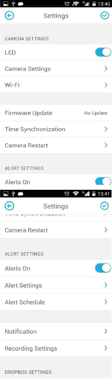 enables you to upload alarm picture and video to Dropbox cloud storage.