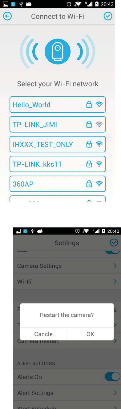 1˅When the device is ON with Blue LED in constant bright status, connect to a available WIFI in