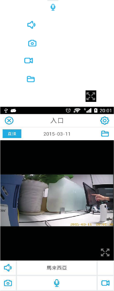 9˅Click on Live-monitor page to access Album, Alarms and Fulltime video. Album includes