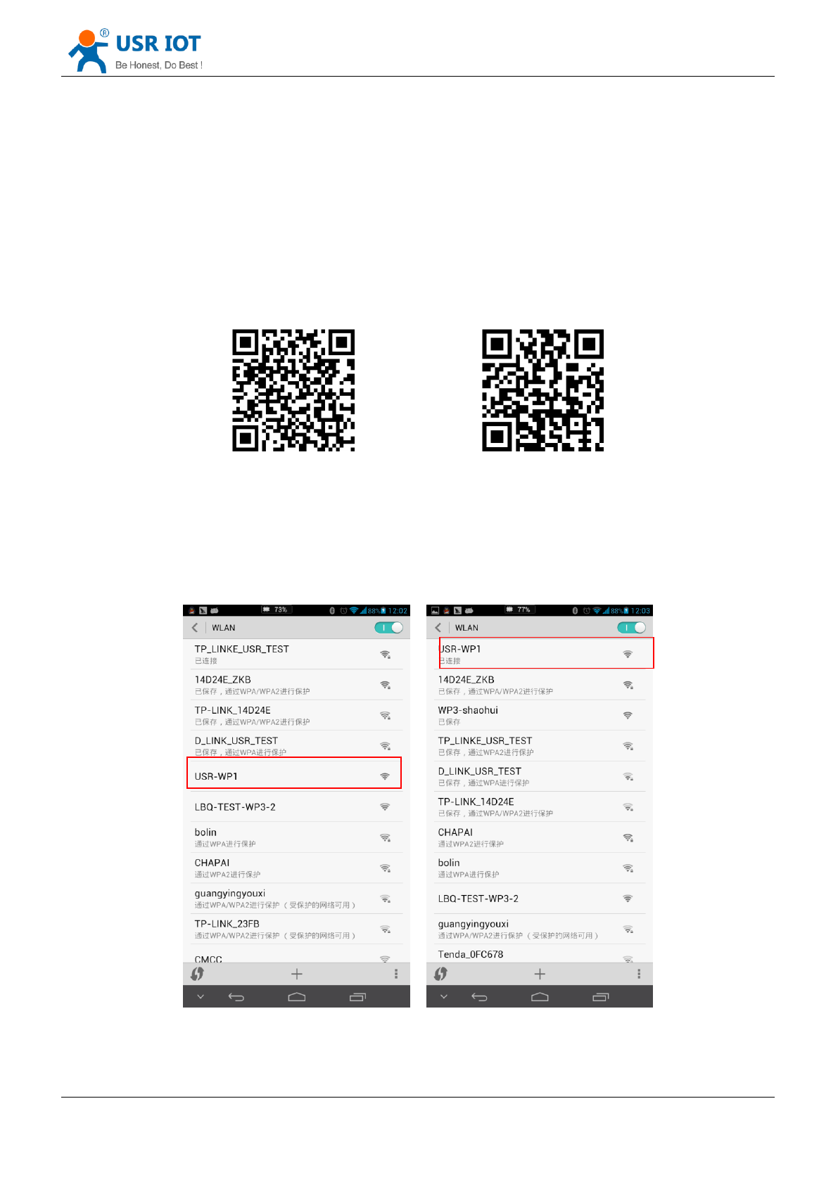 Open the settings, find USR-WP1 in WLAN, connected to the network, as shown below