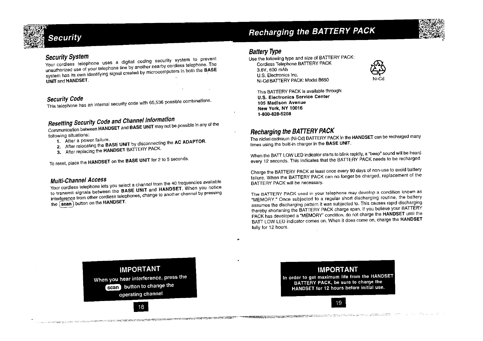 Shenzhen Jingneng Telecom Technology Co Ltd 900 MHz 40 Channel Analog Cordless Phone Manual part 2 and FCC info