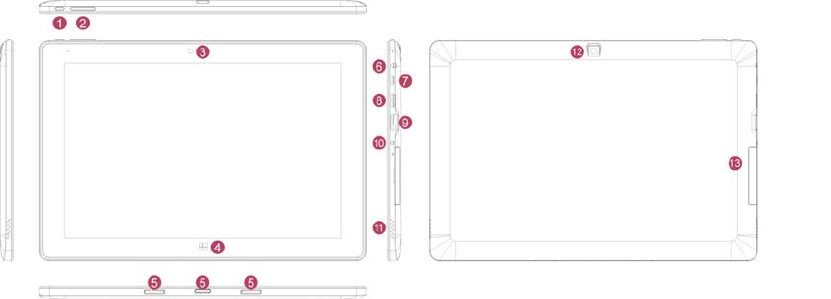 3 Touch Tablet: Used to control the cursor on the Tablet PC, with the same function as a mouse.