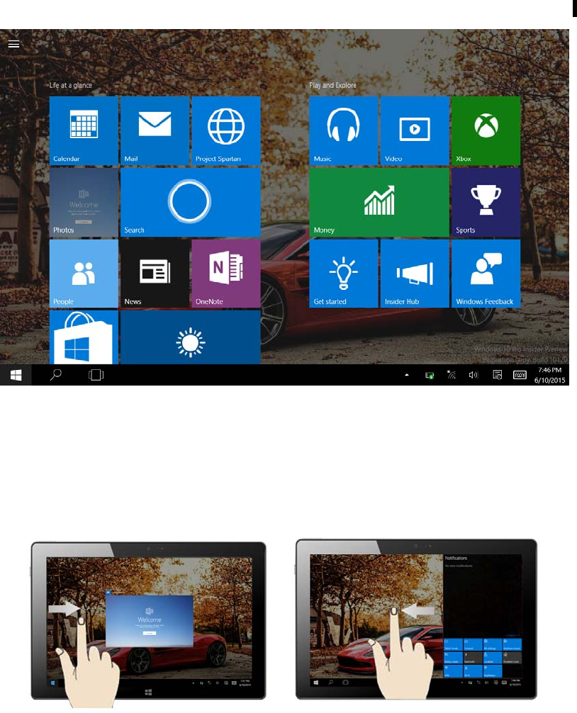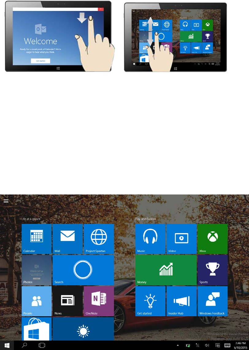 In start screen, slide from the top of the screen In start screen, slide finger up and down