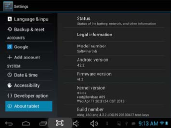Click “Settings” in the main interface and click “About tablet” , Click ‘System