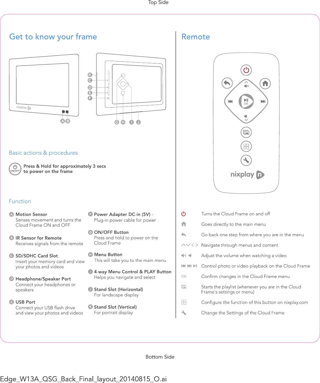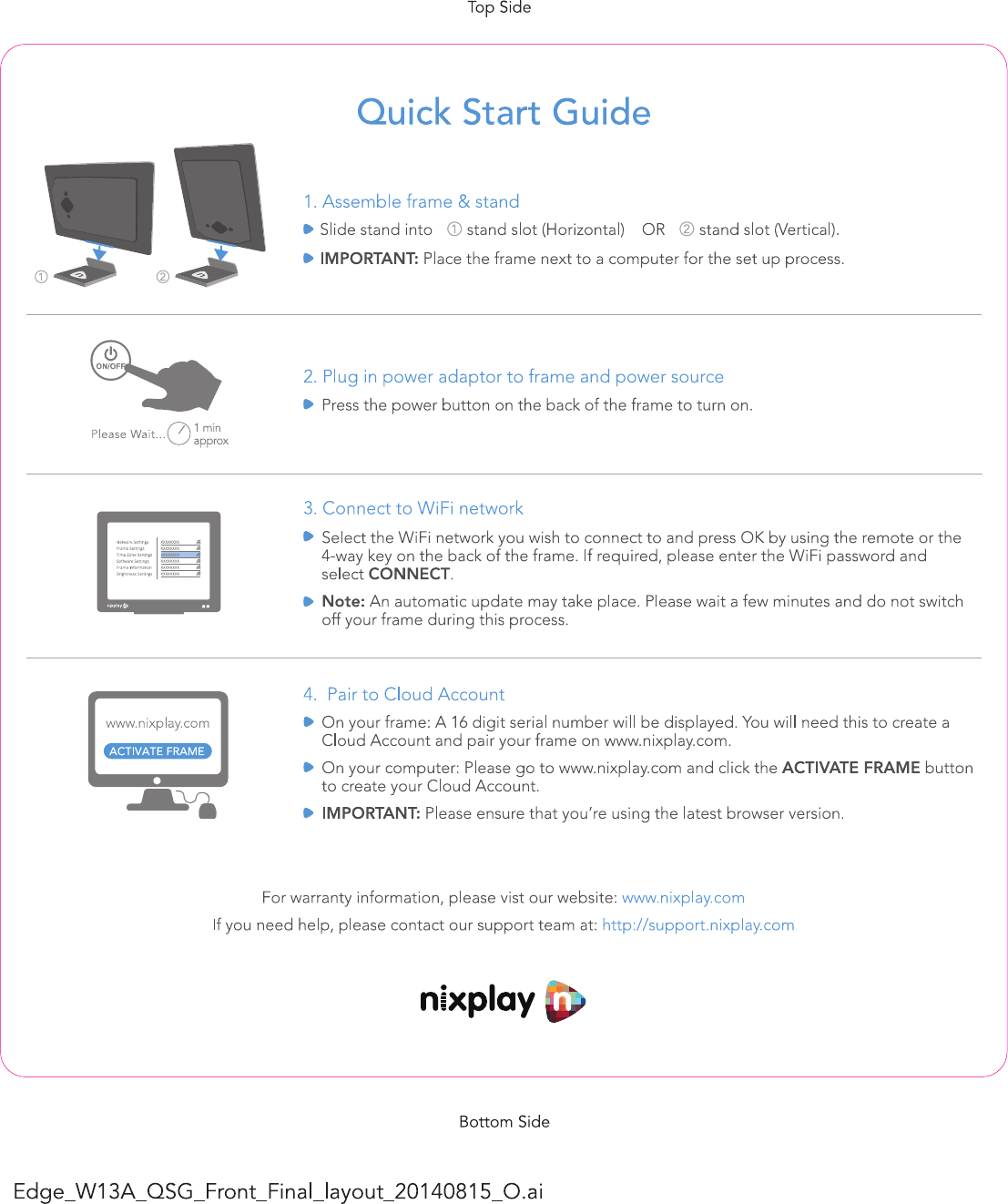 Shenzhen Jingwah Information Technology Co., Ltd. Digital Photo Frame Edge W13A QSG Front Final layout 20140815 O