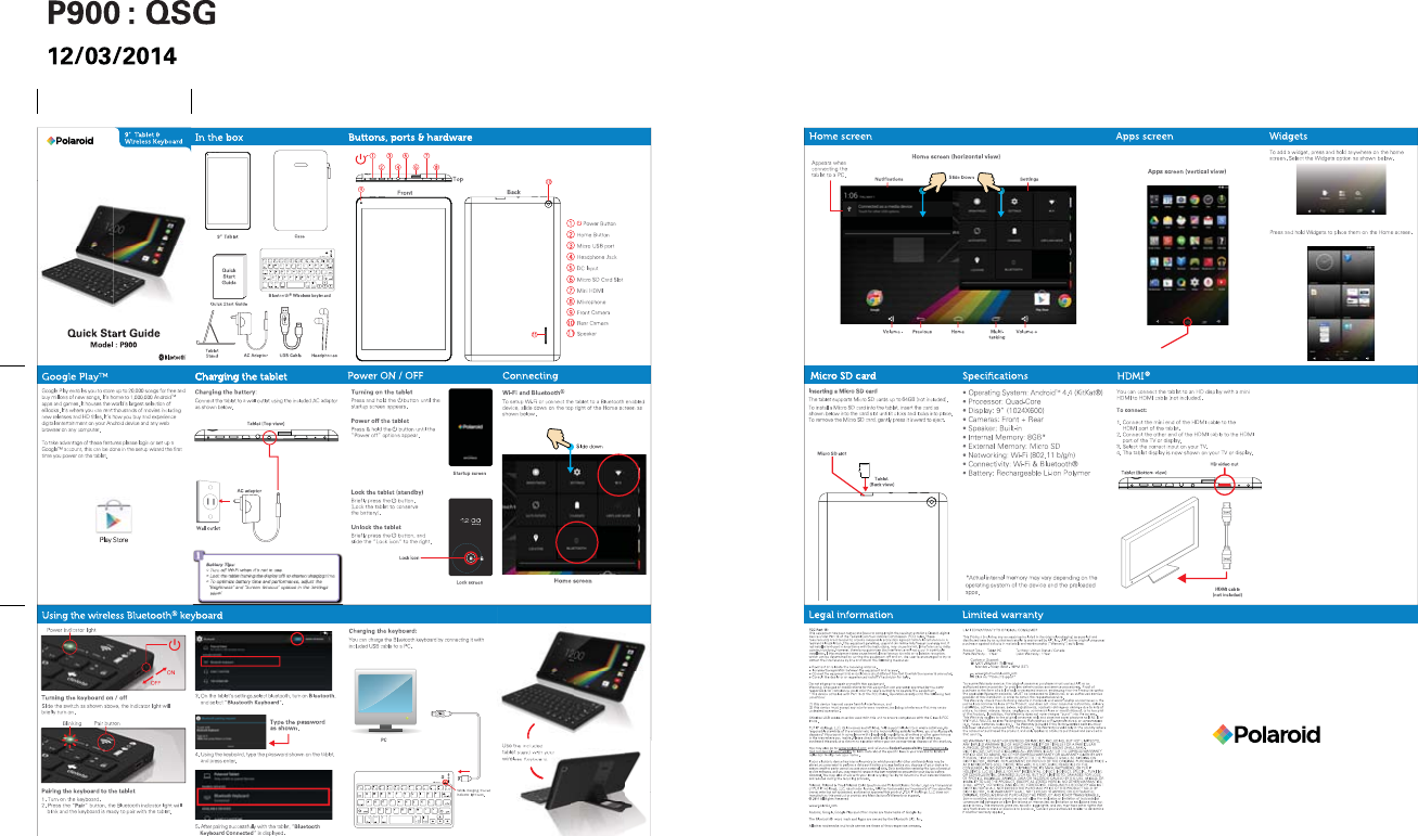 Shenzhen Jingwah Information Technology Co., Ltd. Tablet PC P900 KB QSG ol ai