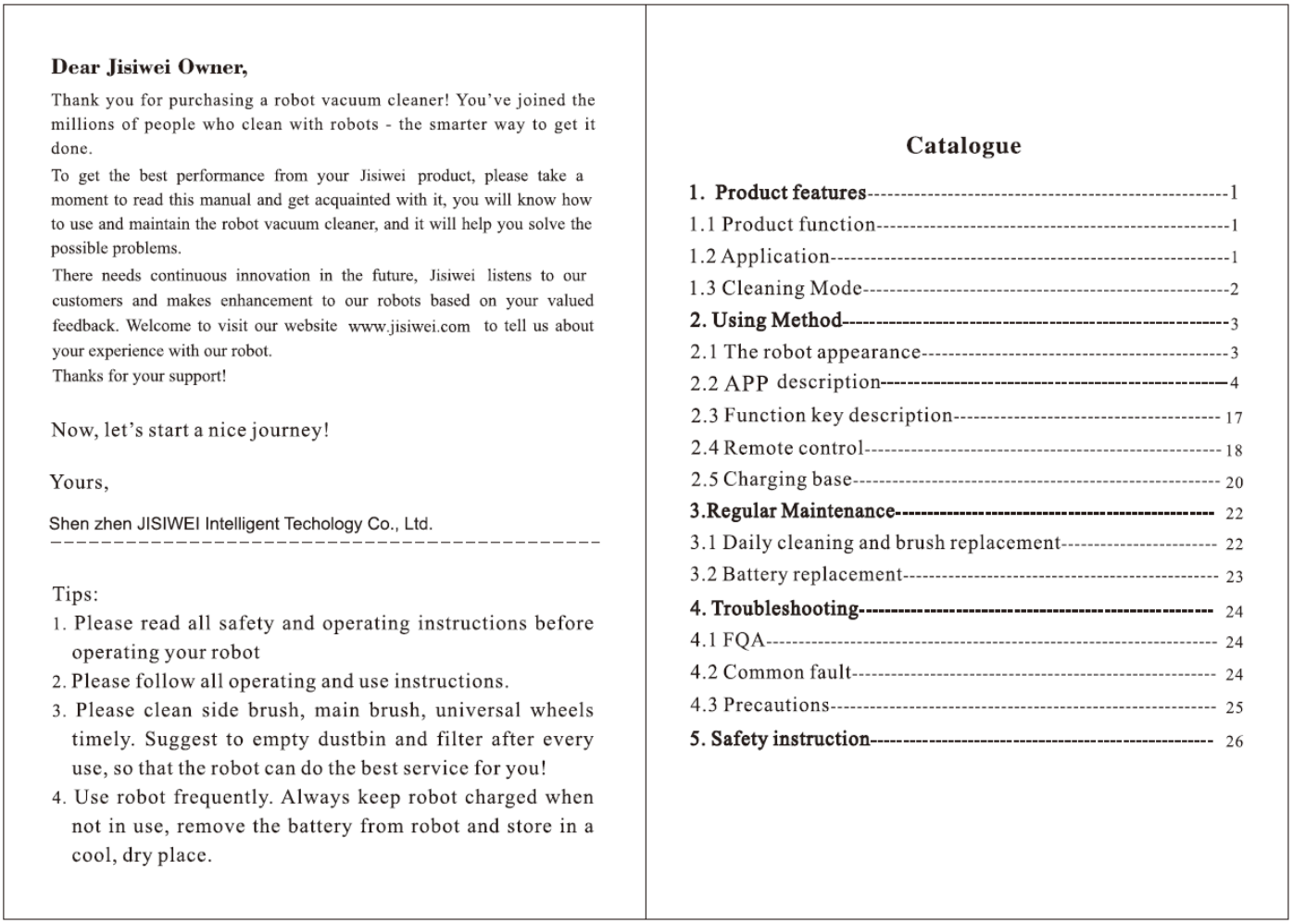 Jisiwei Intelligent Technology I5 JISIWEI Smart cleaning robot User Manual