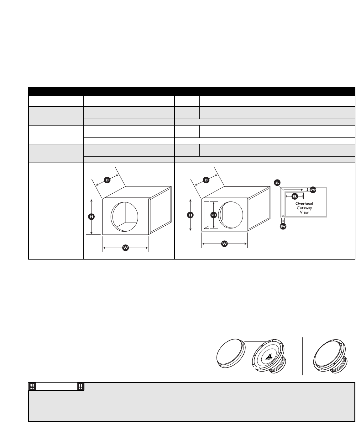 enclosure that will maximize the performance of your speaker. We highly recommend that you have