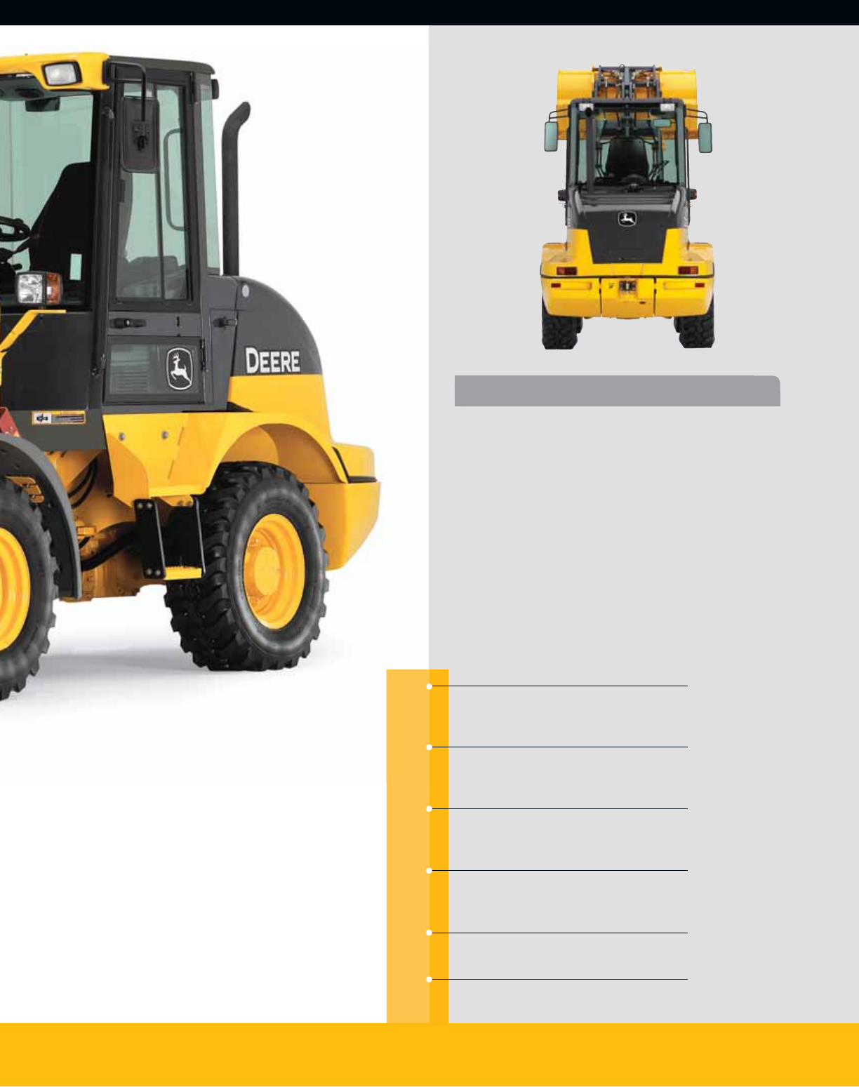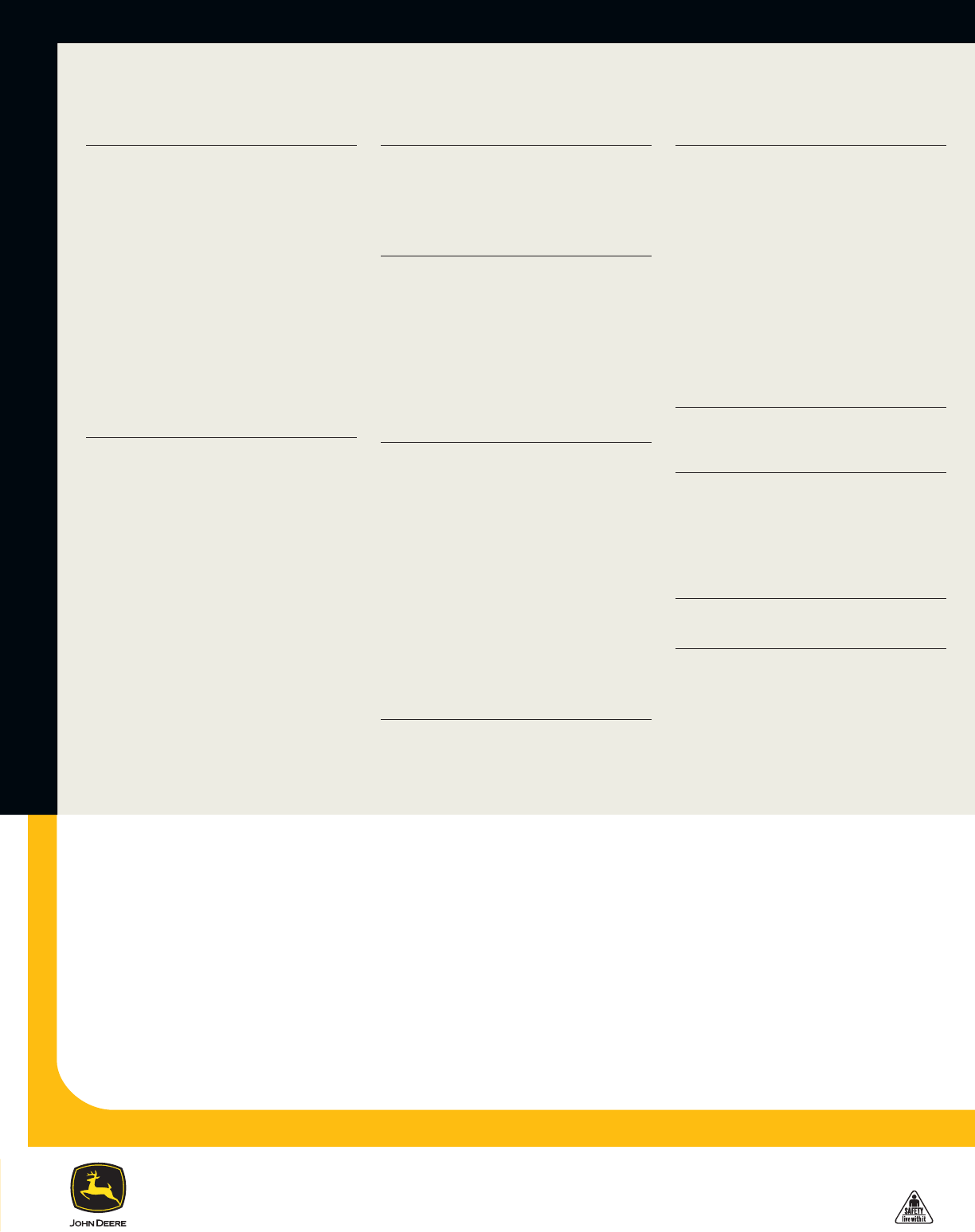 Key: ● Standard equipment ▲ Optional or special equipment *See your John Deere dealer for further information.
