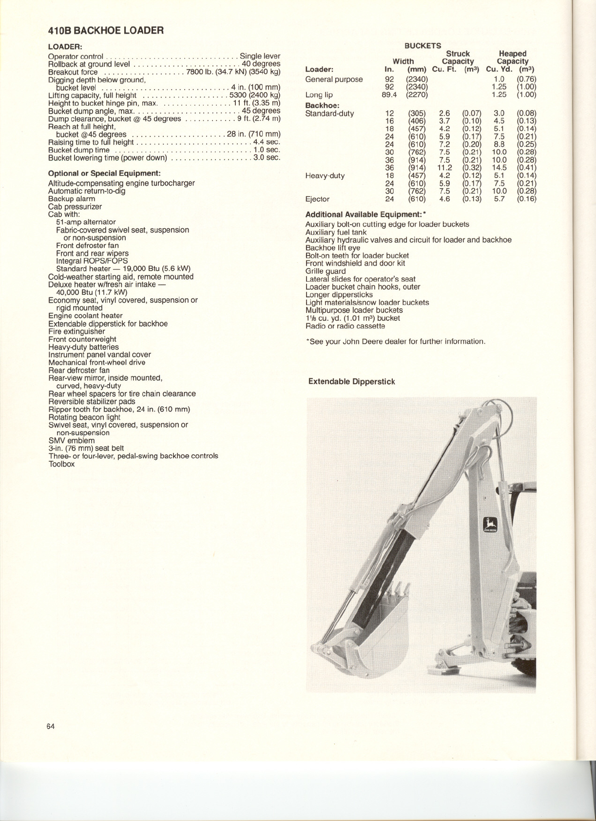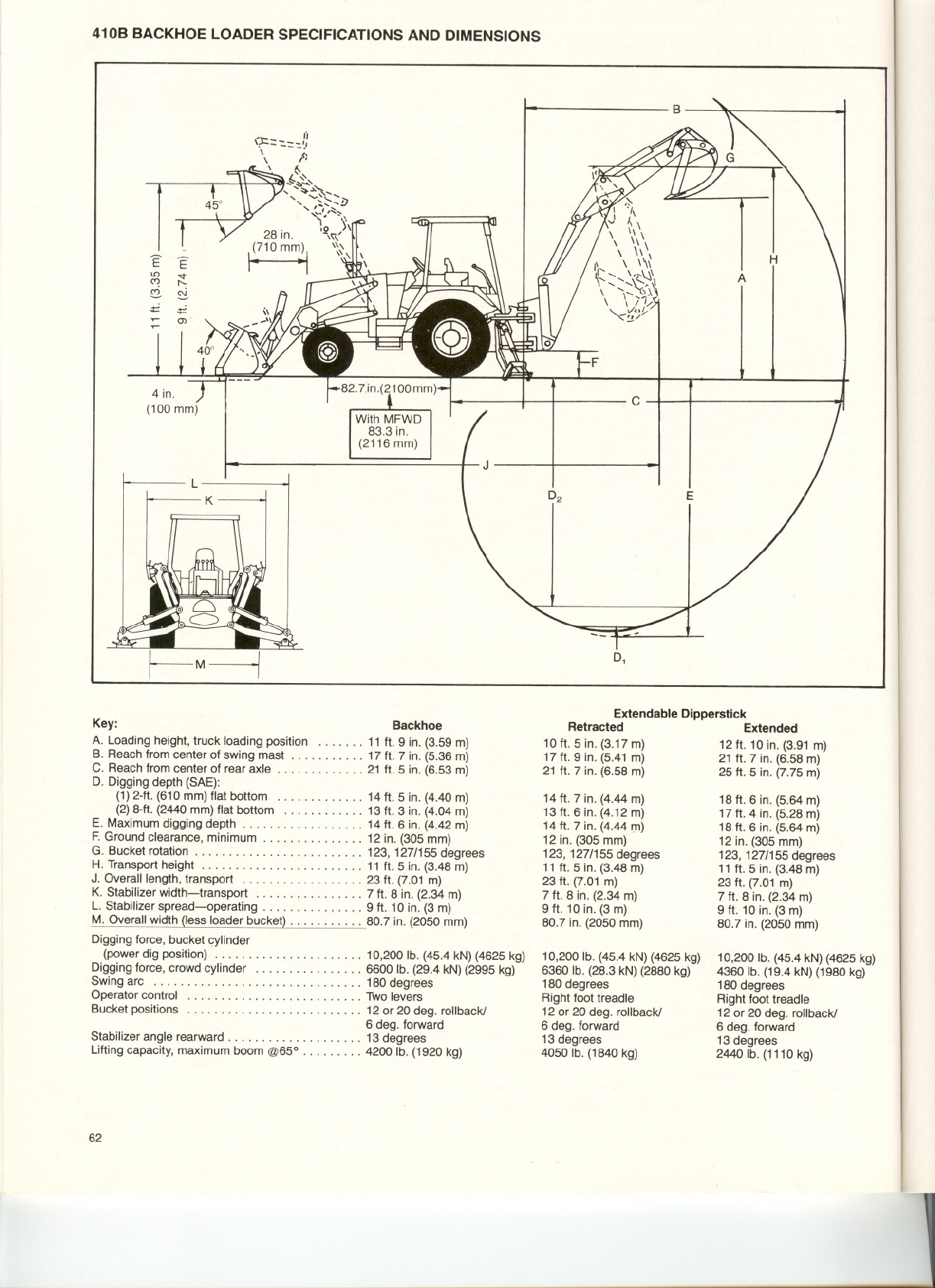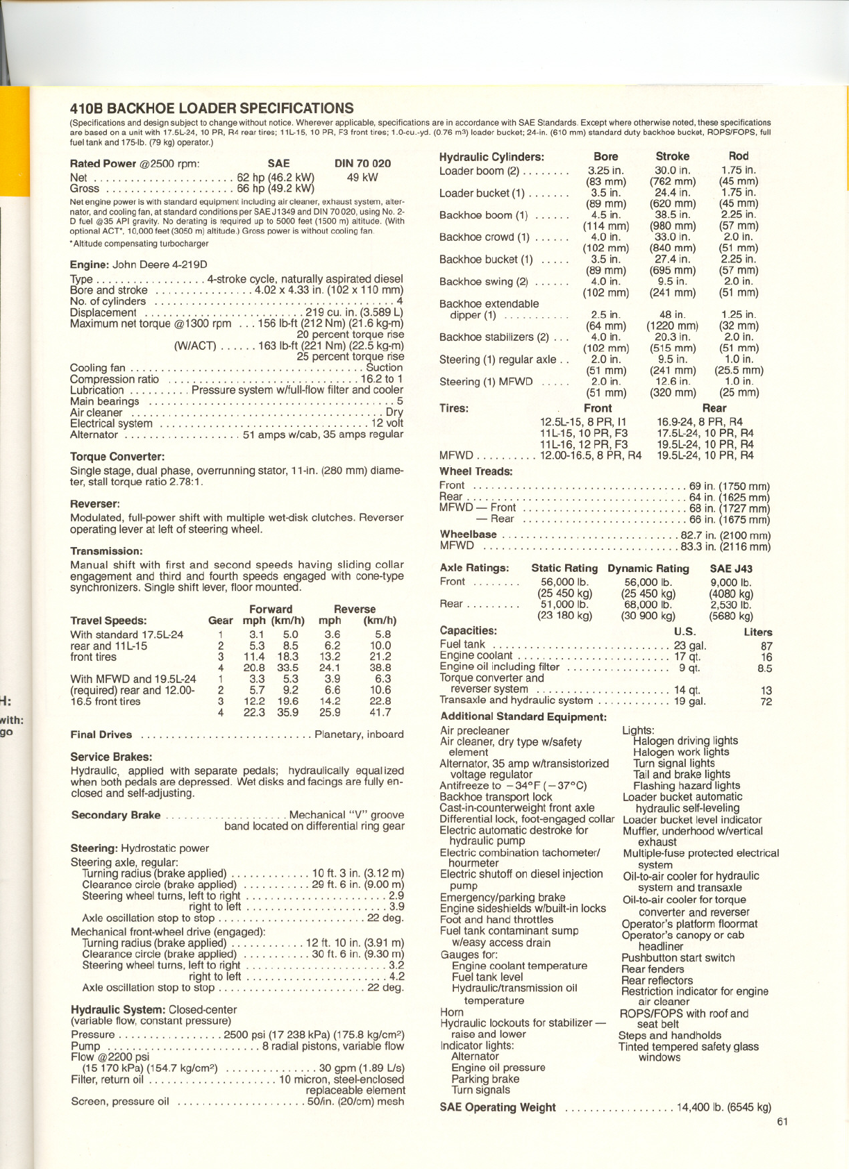410B BACKHOELOADERSPECIFICATIONS