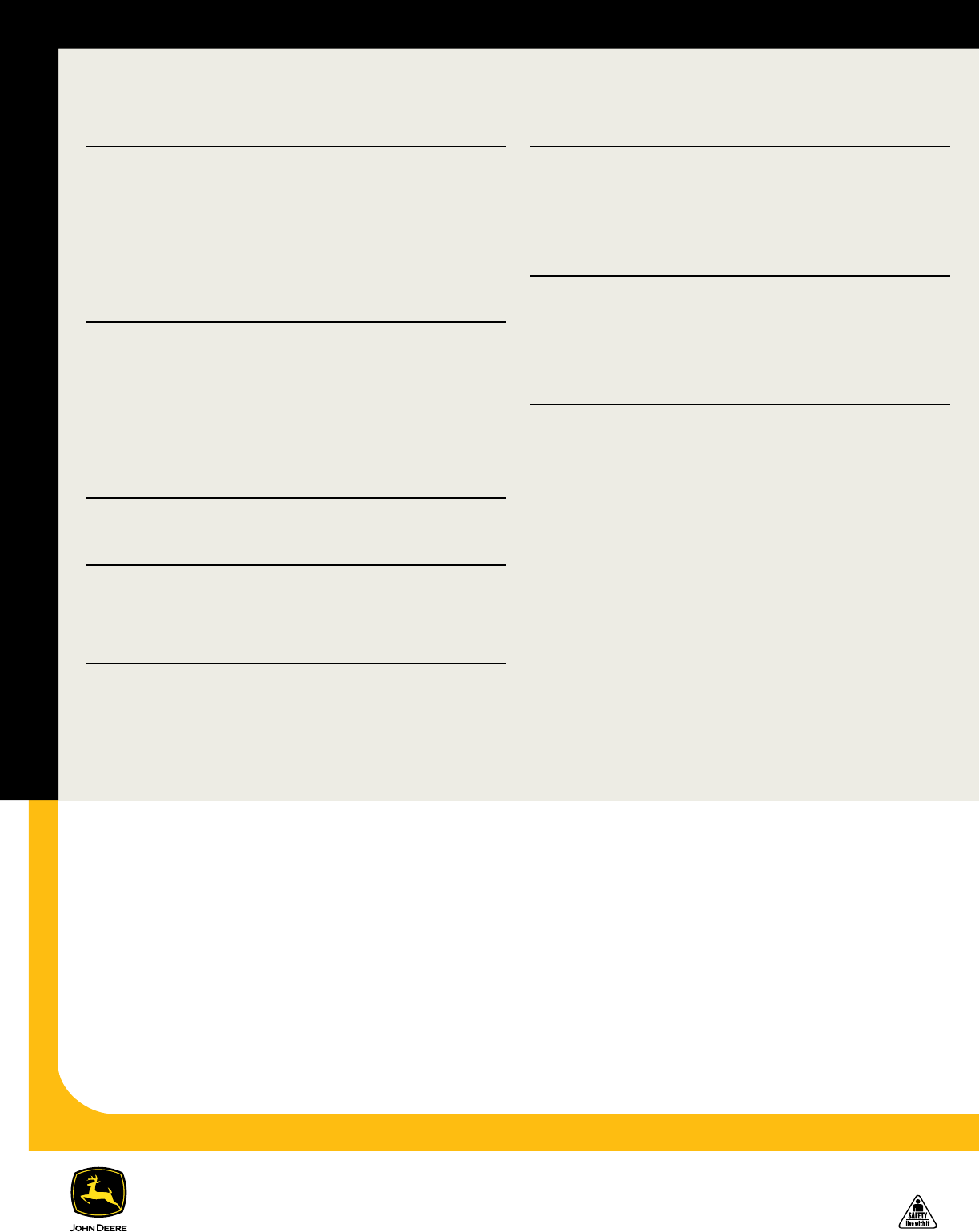 Key: l Standard equipment s Optional or special equipment *See your John Deere dealer for further information.