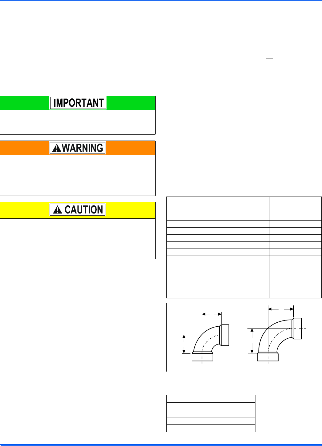 1. For venting purposes, one 90° sweep elbow is equal to 5 Ft. of venting length, one 90° standard elbow is equal to 10 equiva-