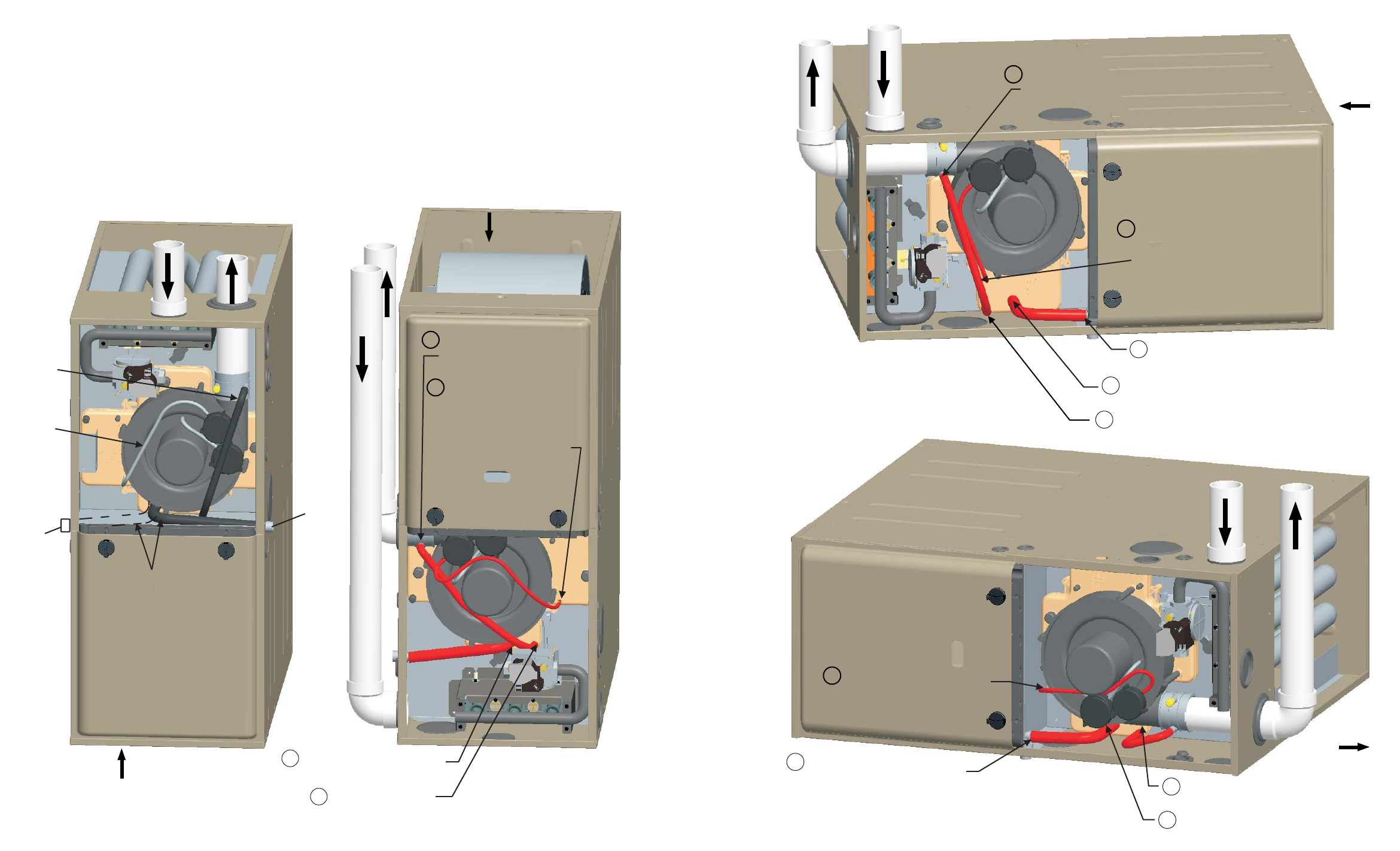 Furnace is multi-position and may be installed in any of the configurations shown.