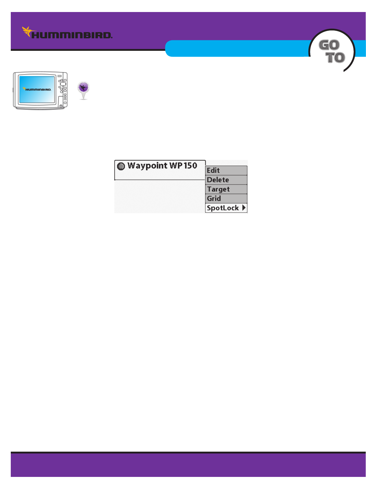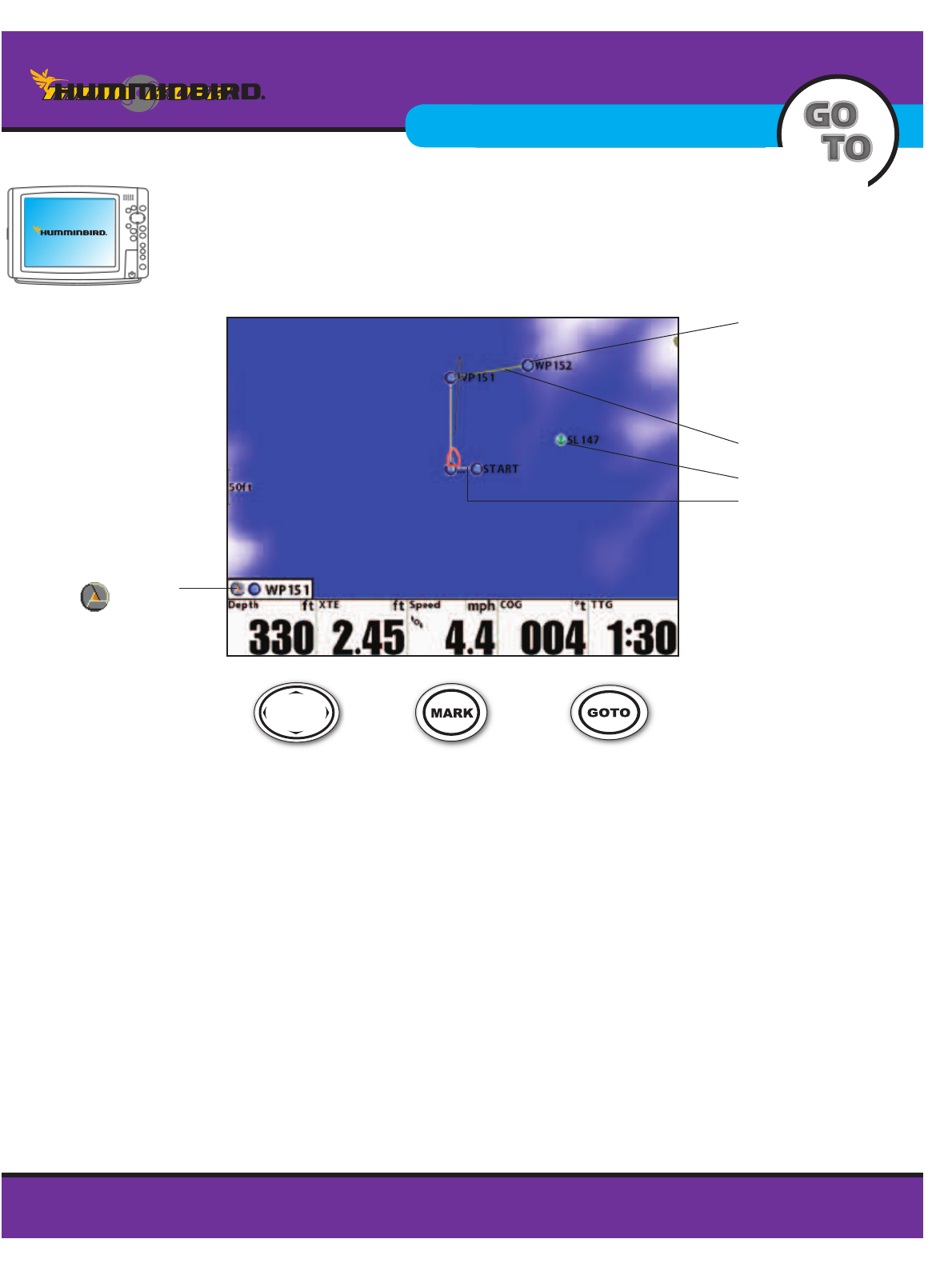 NOTE: Initiation of Route navigation is done through the Humminbird.