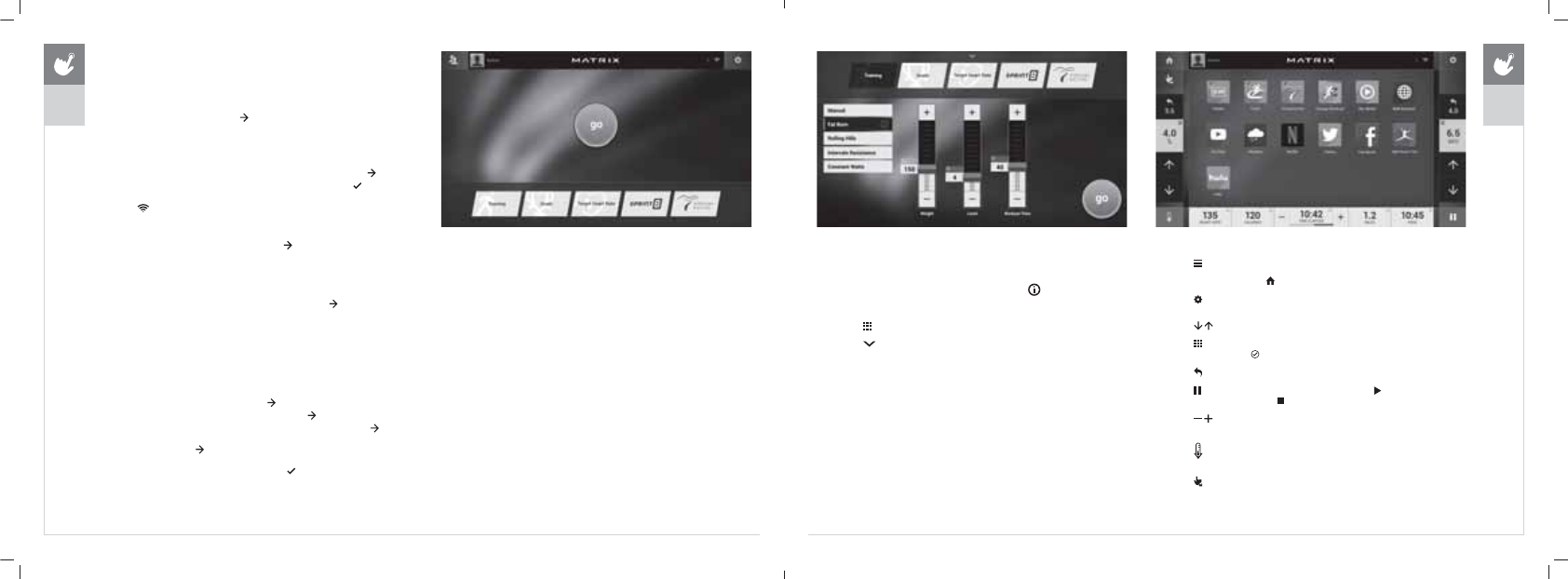 A) /&'',63/$<:,1'2:Displays workout feedback, program profile and more.