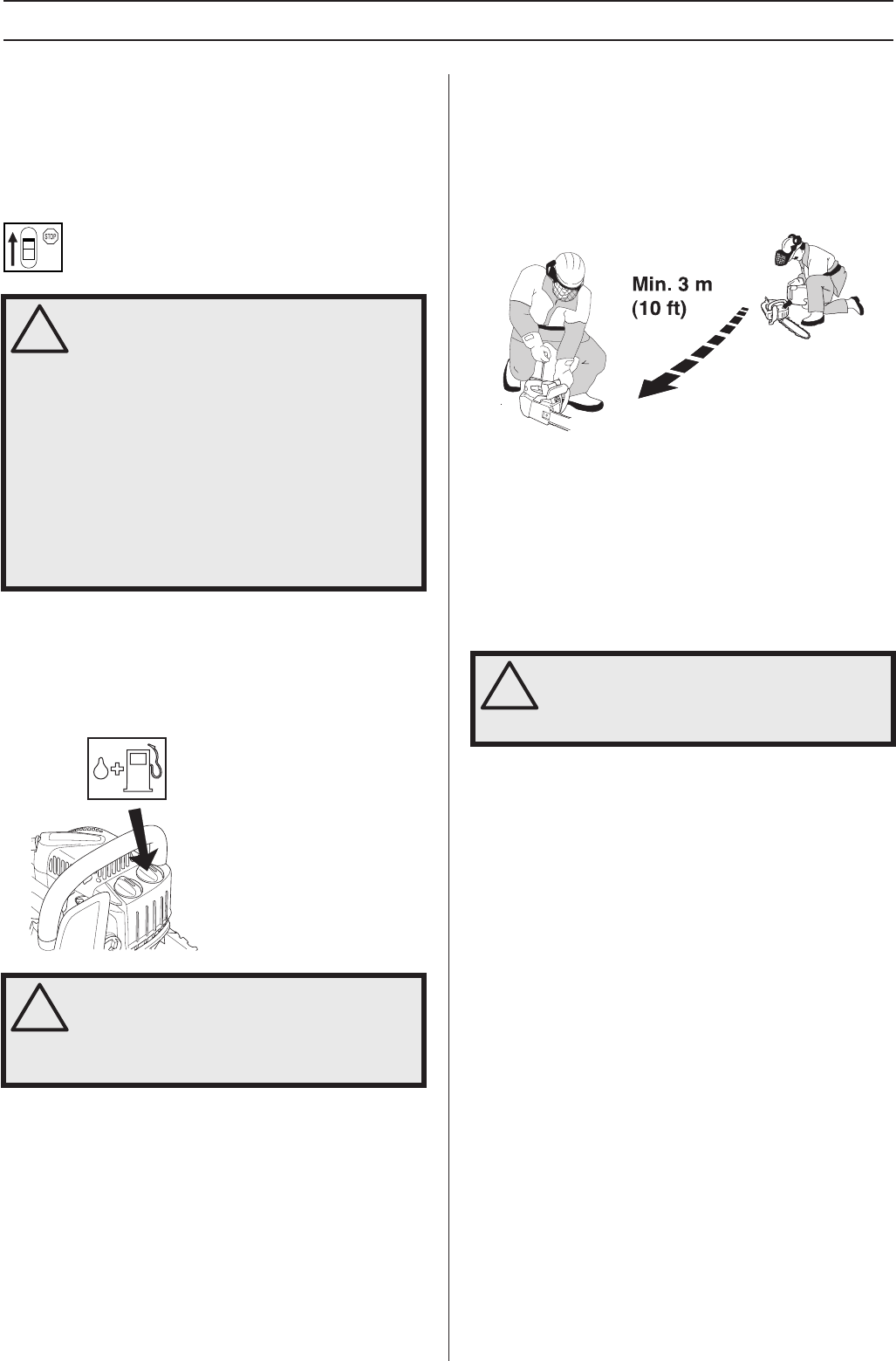 Use caution when handling fuel. Move the chain saw at least