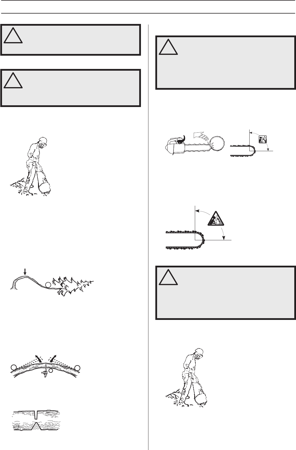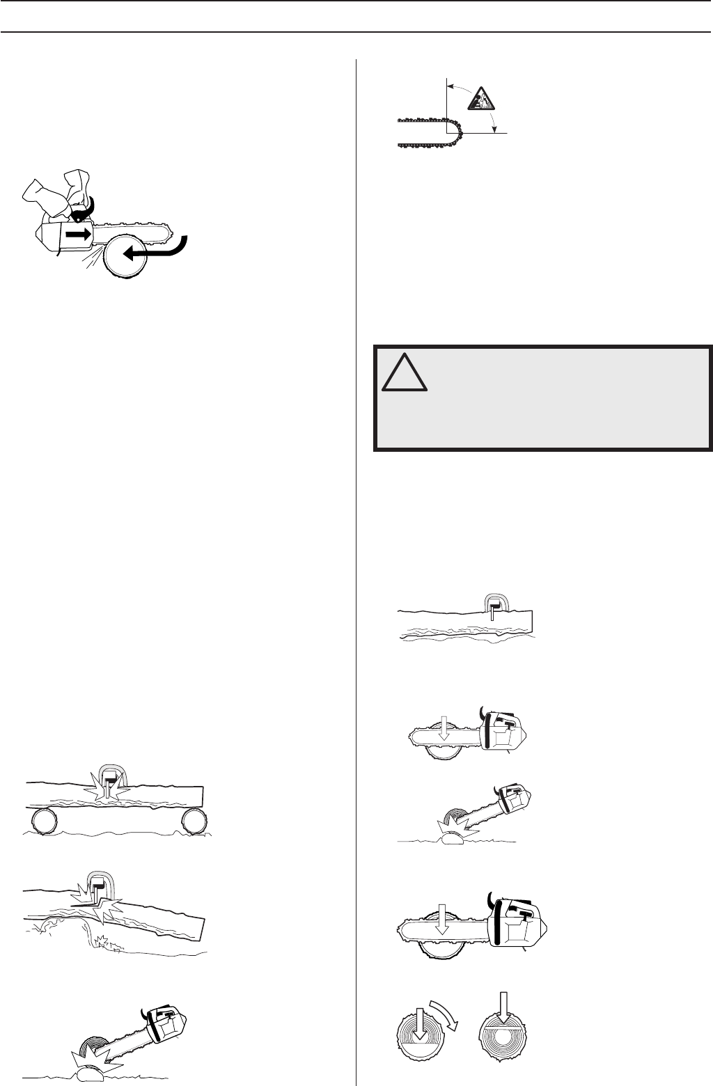 obstacles. Do not let the nose of the guide bar contact a log,