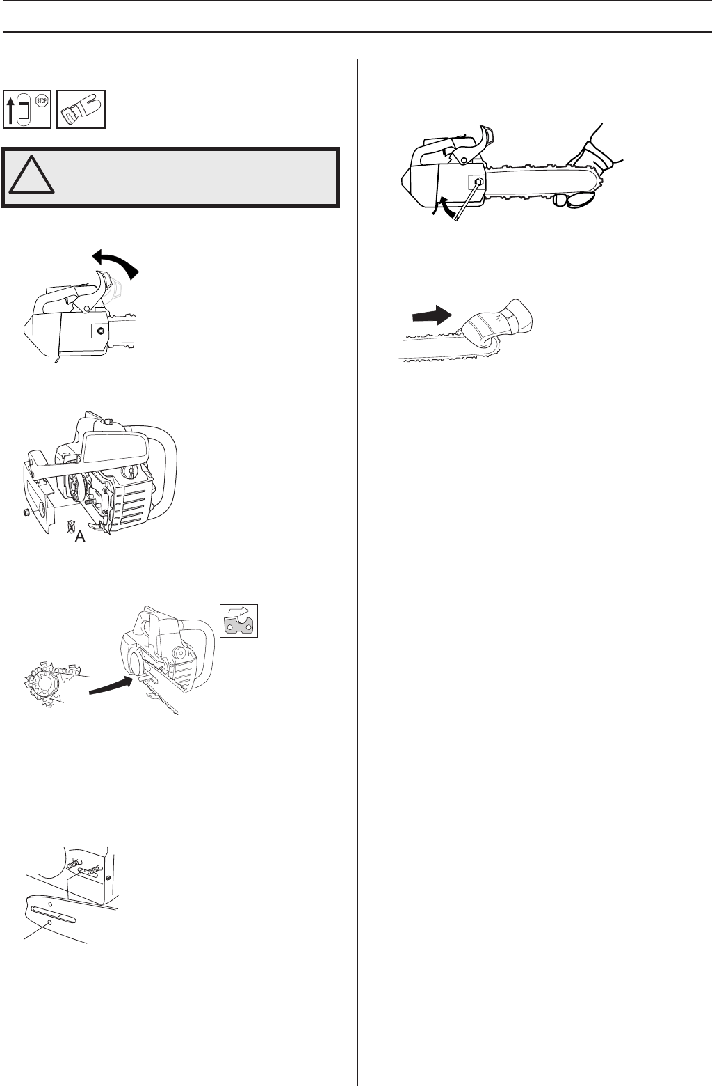 and saw chain to the rear, and the muffler away from your