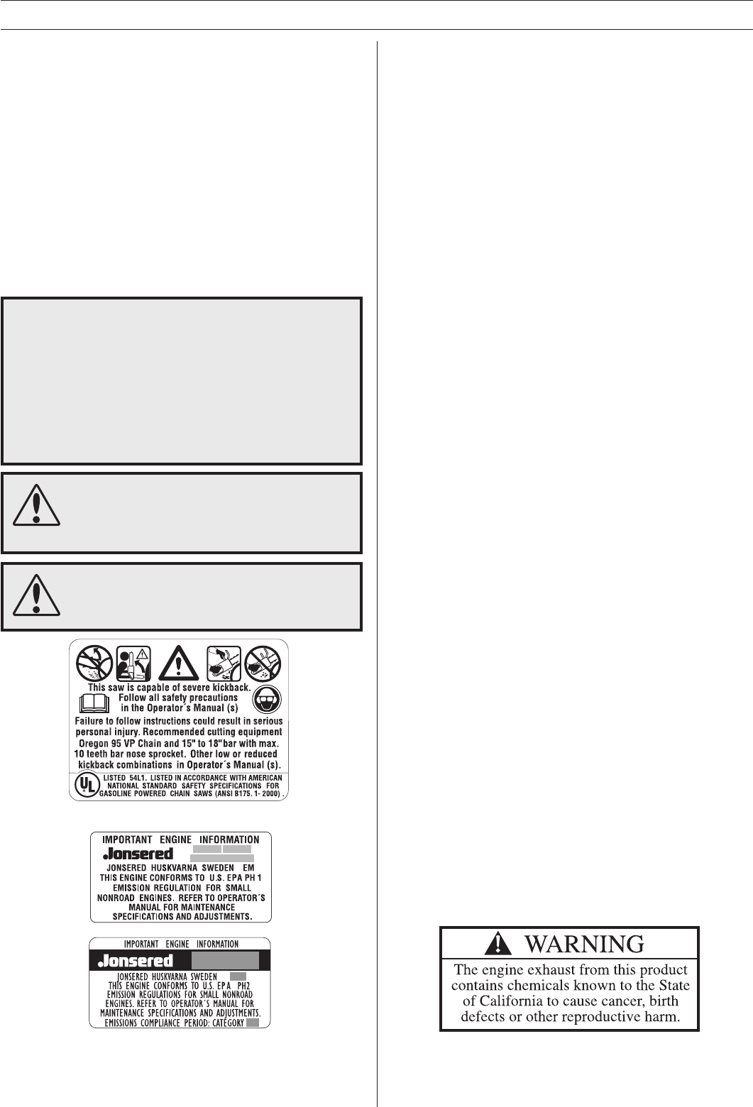 Operator’s Manual. Jonsered recommends that you retain all