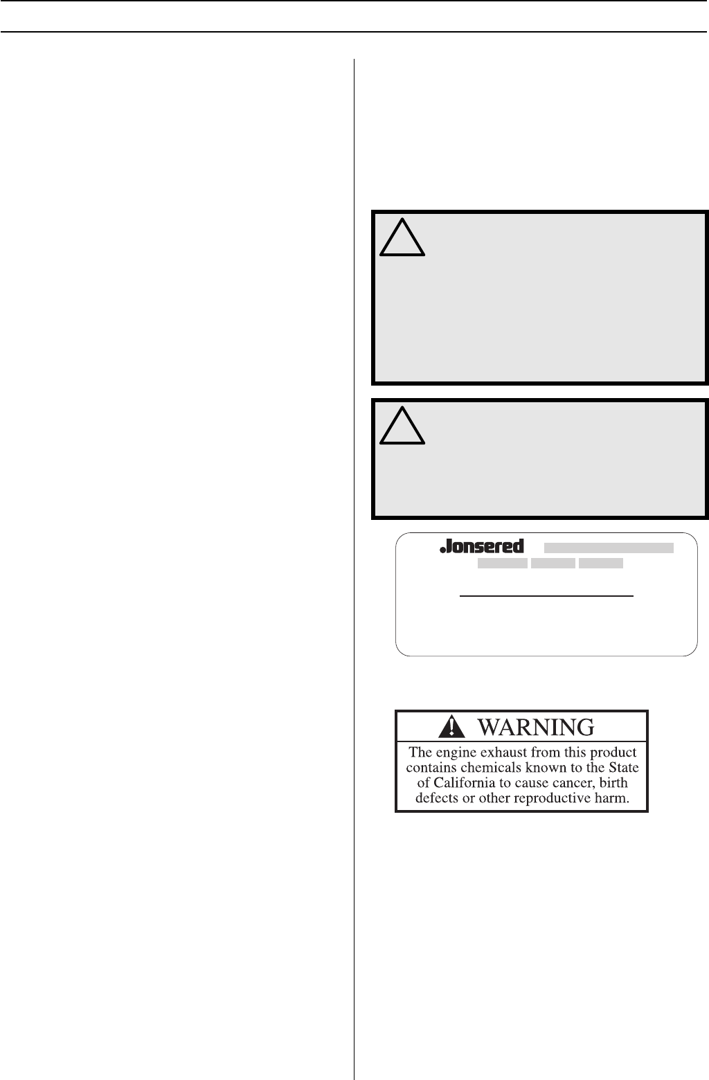 authorized servicing dealer or call Jonsered, at Sweden +46-