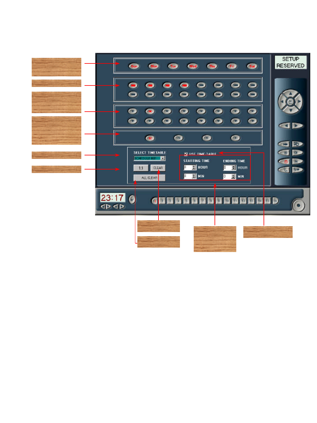 3. Check that you have correctly set up amount of camera, and have selected day of the week for recording