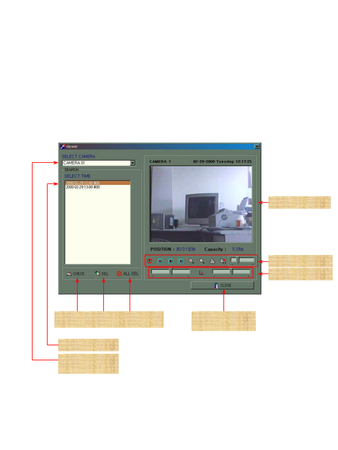 4. Camera selection : Select a camera to search among No. 1~16 camera.