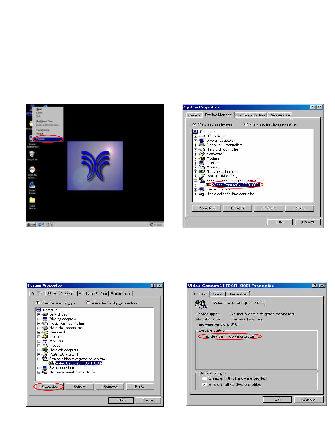 2. Check whether there is an error of ‘Video Capture64[BSR1000]’of ‘Sound Video and Game Controller’of system