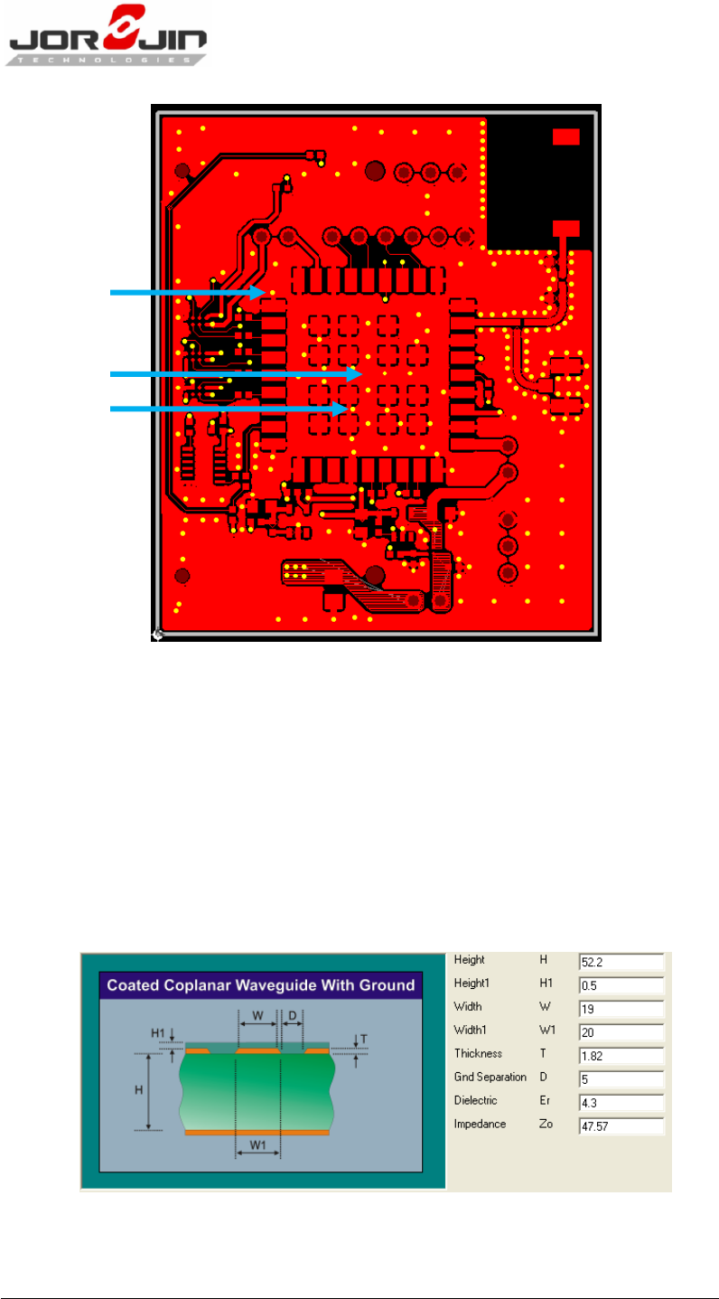 the antenna and RF trace routing.