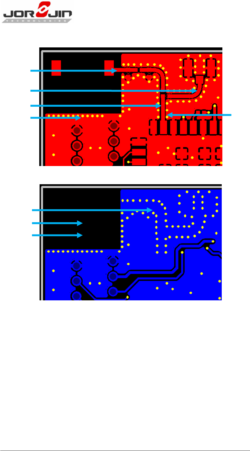 Signal traces must not be run underneath the module on the layer