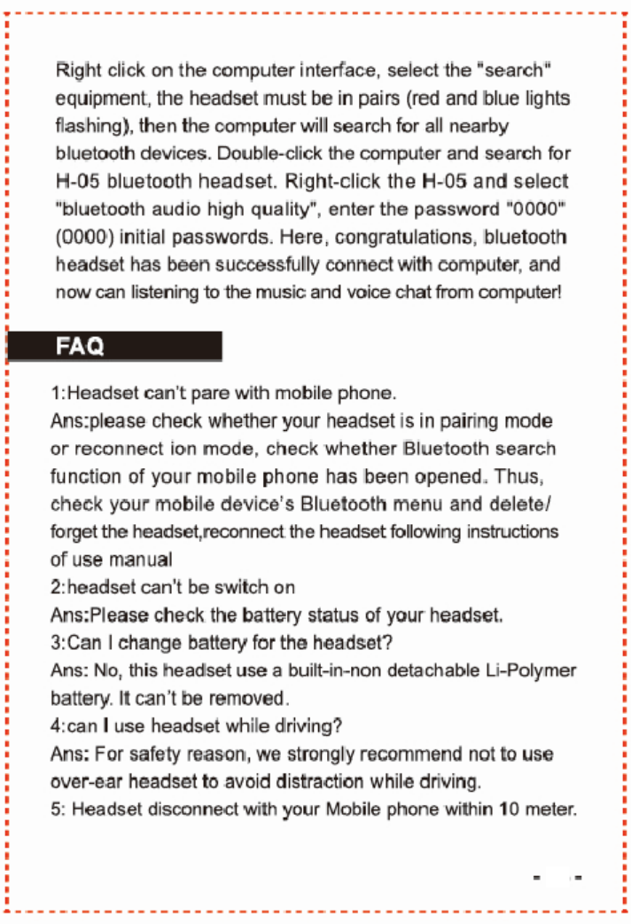 Joway Power Supply JOWAYH-05 Bluetooth Stereo Earphone User Manual