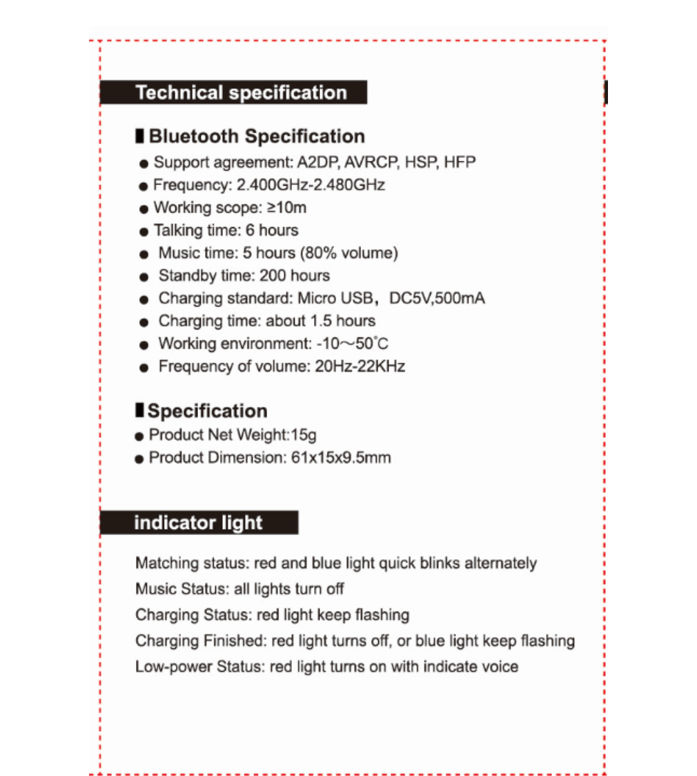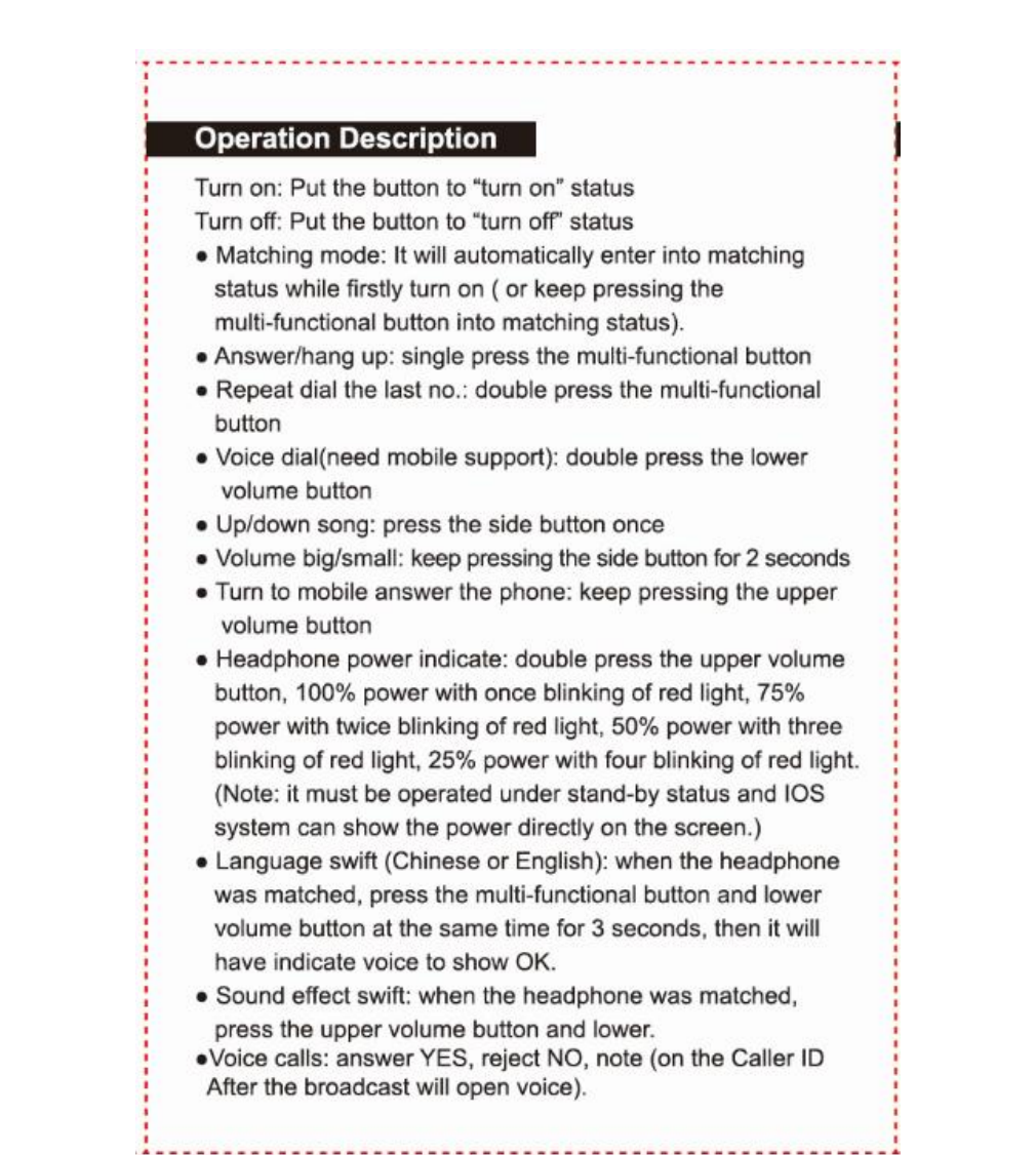 Shenzhen Joway Power Supply Co., Ltd. Bluetooth Stereo Earphone Users Manual