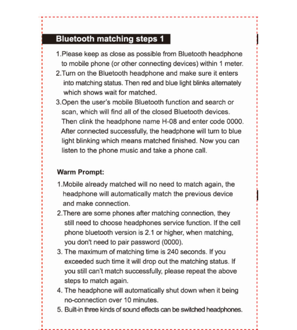 Joway Power Supply JOWAYH-08 Bluetooth Stereo Earphone User Manual