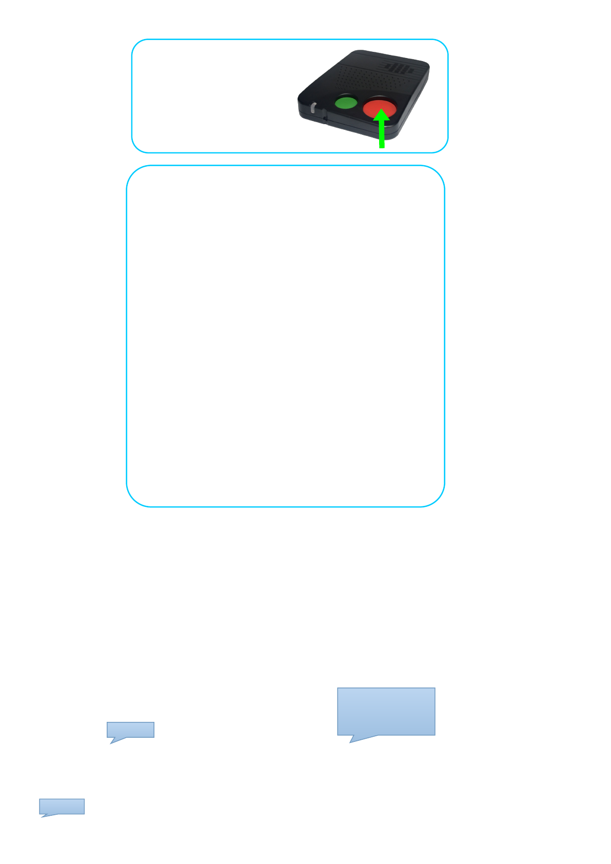 Pendant (or Panic Buttons), or Bedside Rock Button, to get help;