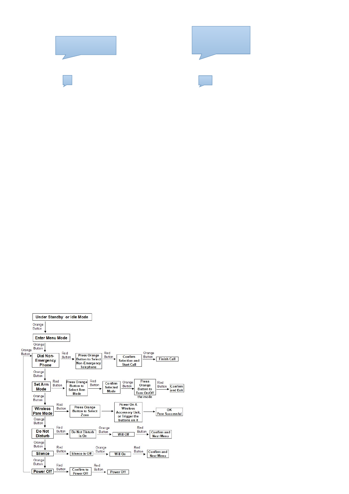 3. Wireless Pare Mode: Can used to pare/connect wireless accessories, such as Fall Detection/Panic Button, PIR,