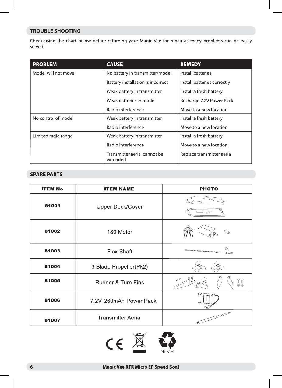 1) When you have finished using your Magic Vee, you should first switch ‘OFF’ the model (disconnect the 7.2V