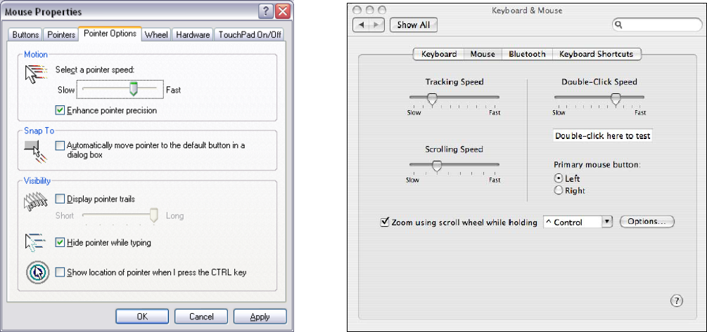 screen, and then select the “Pointer Options”. After you have made your changes; select “Apply”,