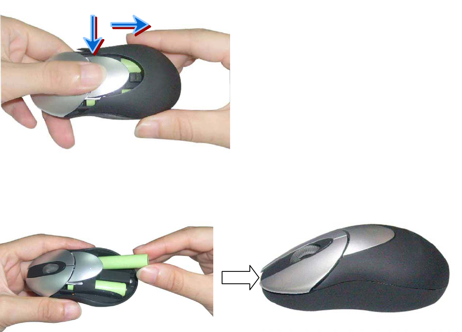 1. Remove the Battery Compartment Cover of your Mouse by pressing the silver release