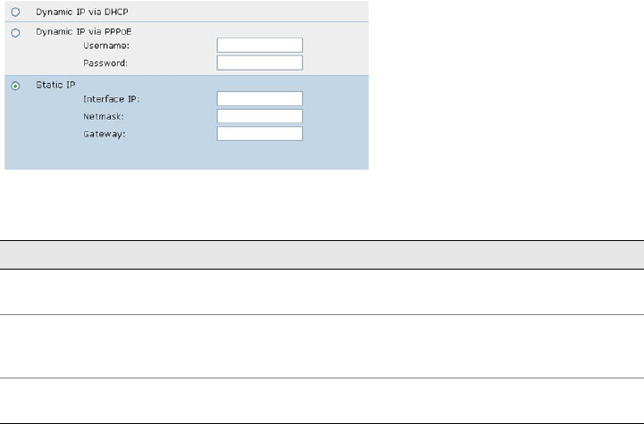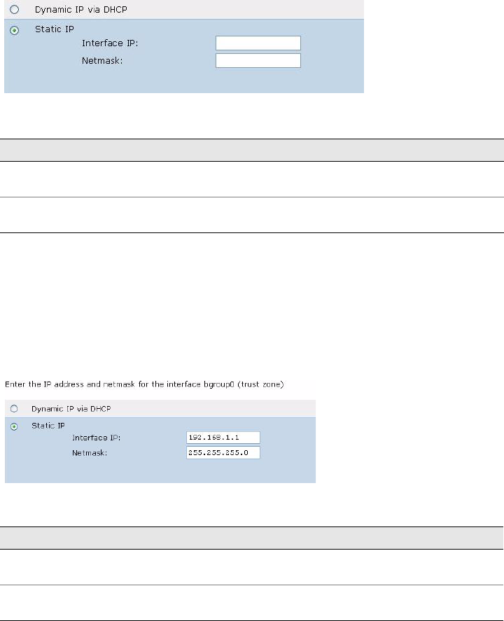 Static IP Assigns a unique and fixed IP address to the Trust zone interface.