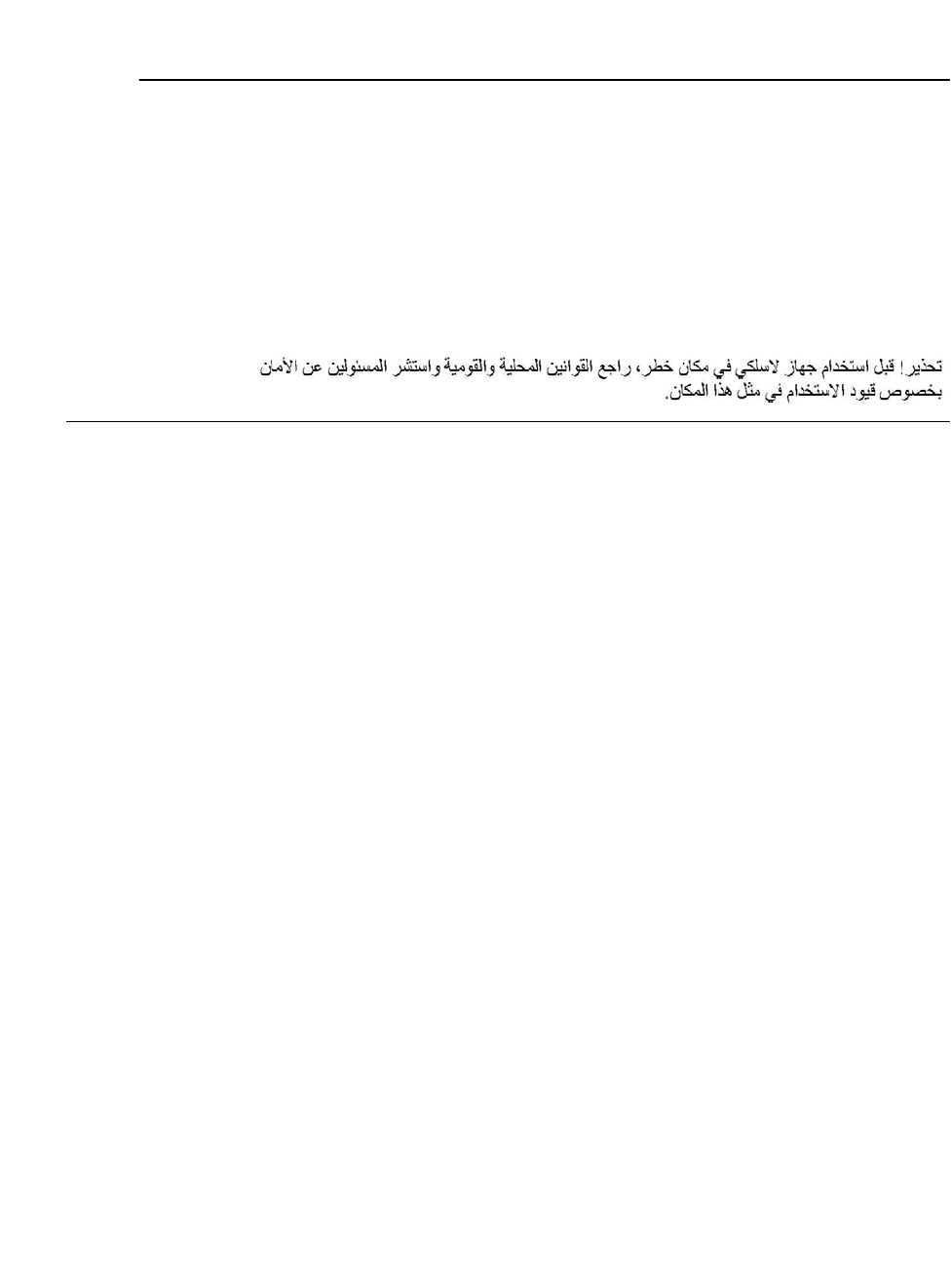 Warning! Før bruk av trådløst utstyr i risikable omgivelser, ta hensyn til lokale regler, nasjonalt lovverk