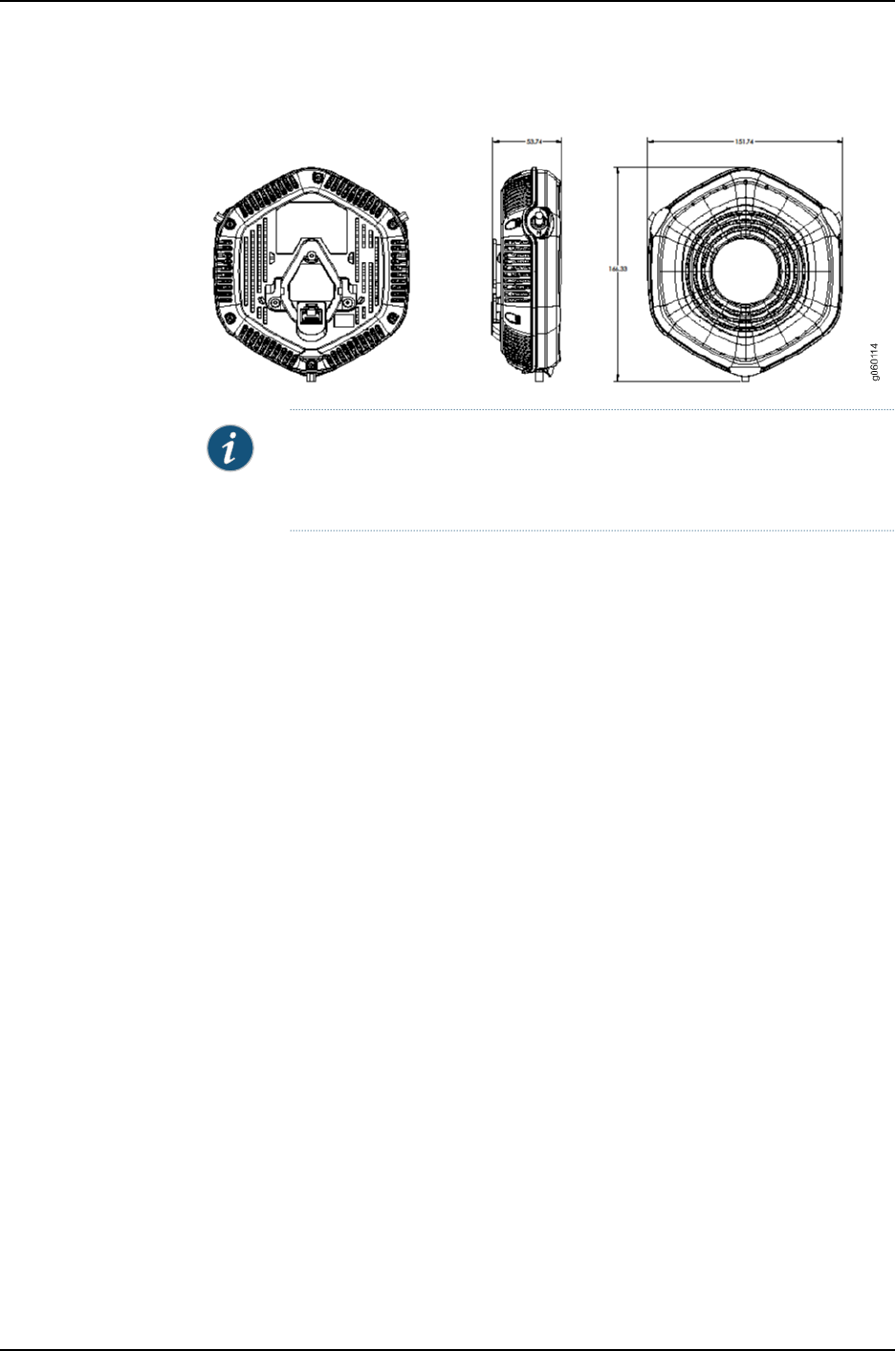 Figure 40: Dimensions of the Installed WLA532 Access Point on an