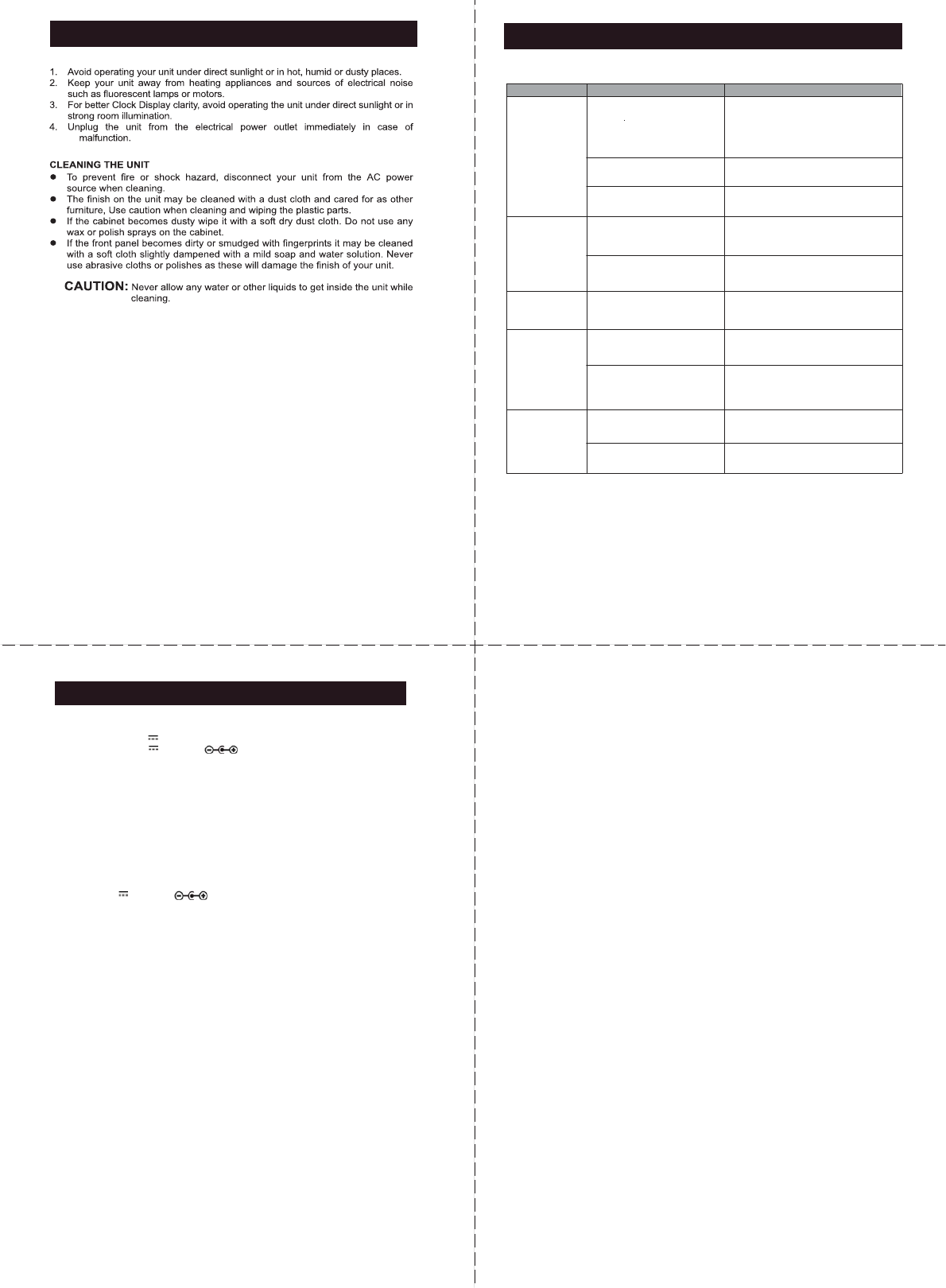 If you experience difficulties in the use of the unit, please check the followings: