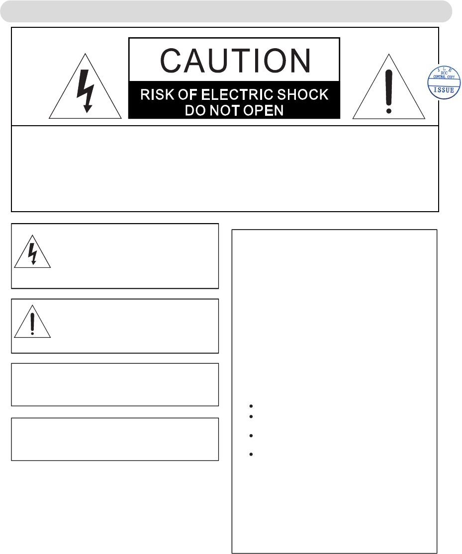 SHOCK, DO NOT EXPOSE THIS PRODUCT TO RAIN