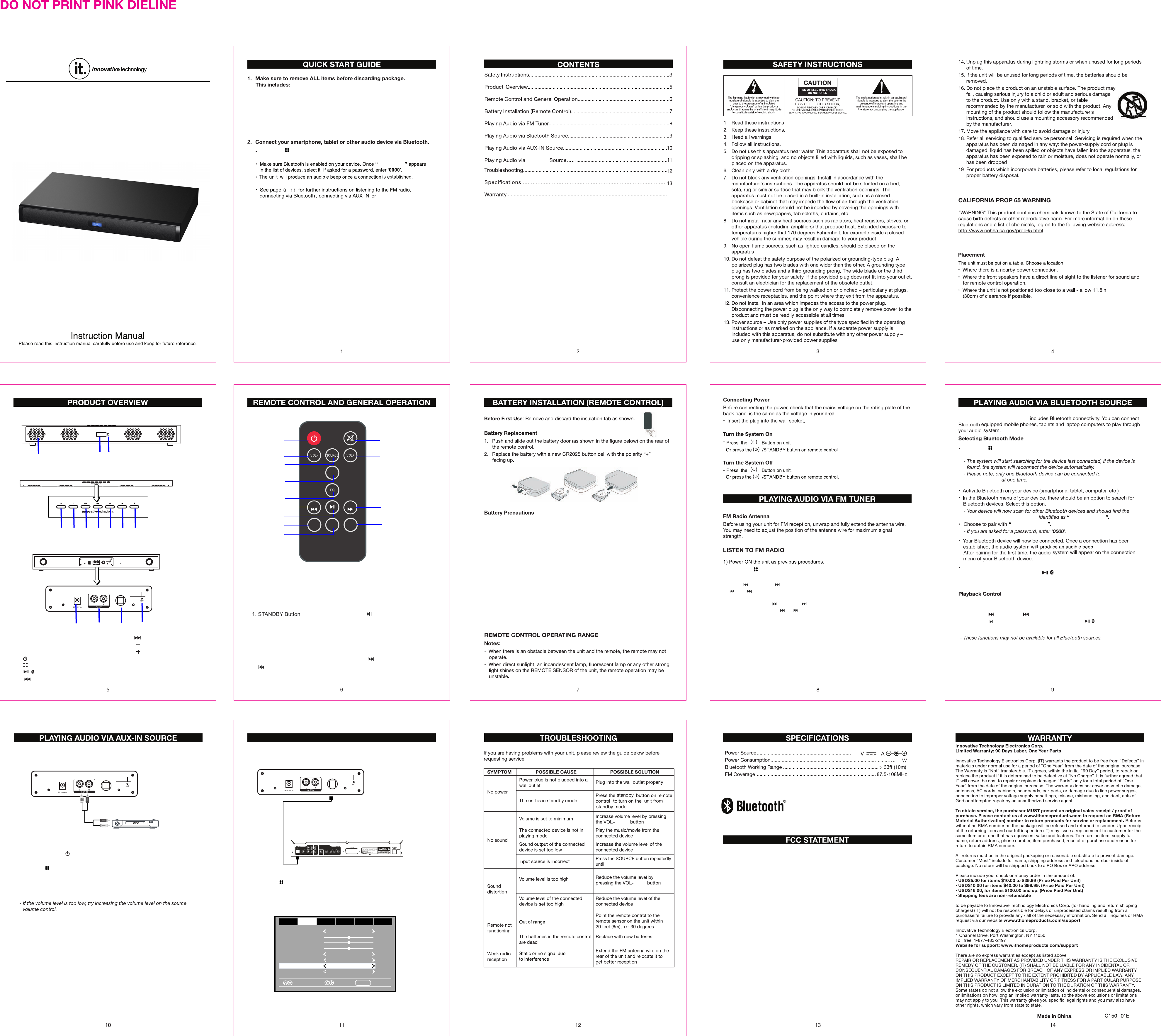 Shenzhen Junlan Electronic Ltd Bluetooth Soundbase ITSB 340 Manual 012215 lores