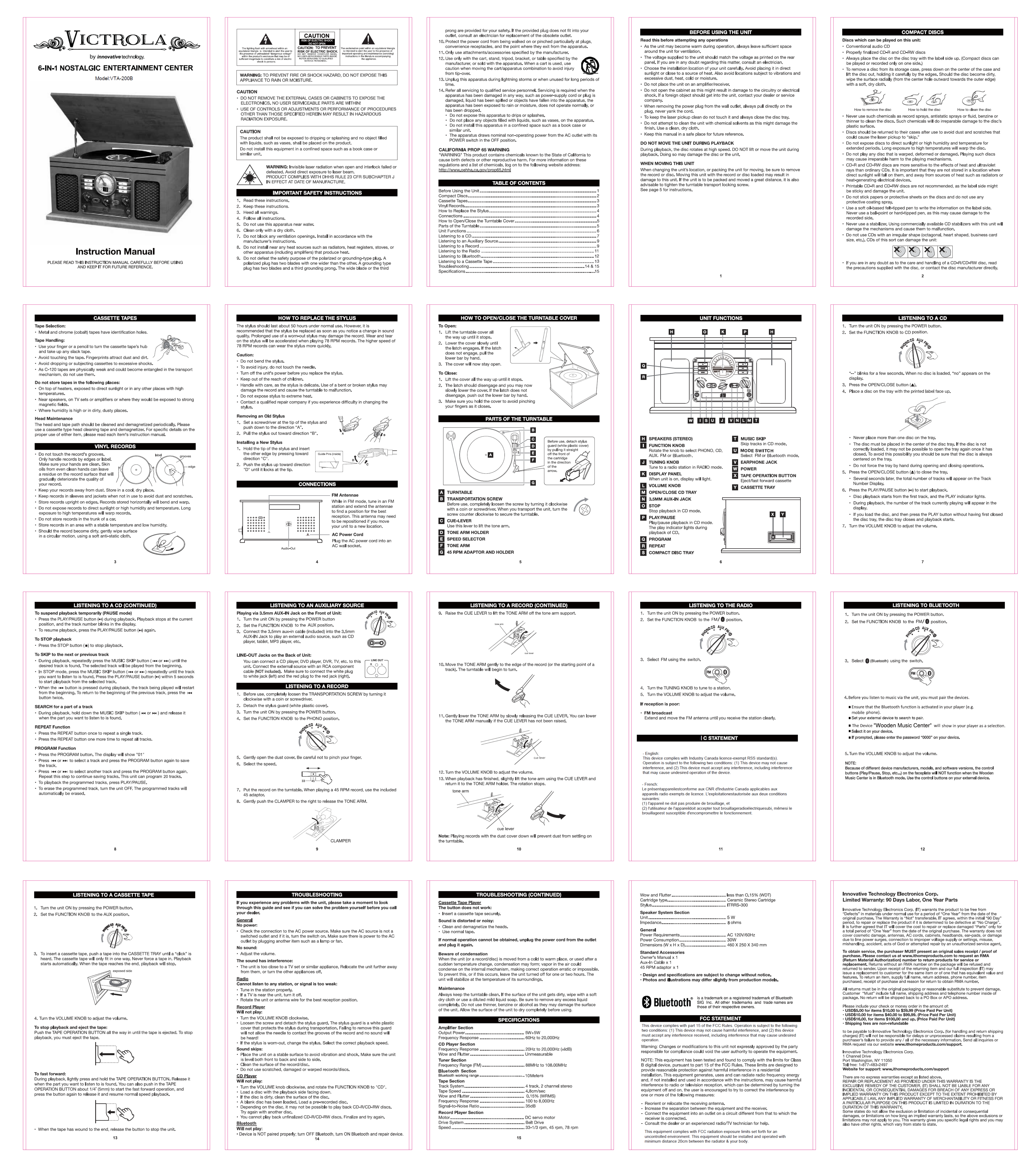 Junlan Electronic JPB79875B 6-IN-1 NOSTALGIC ENTERTAINMENT CENTER User Manual