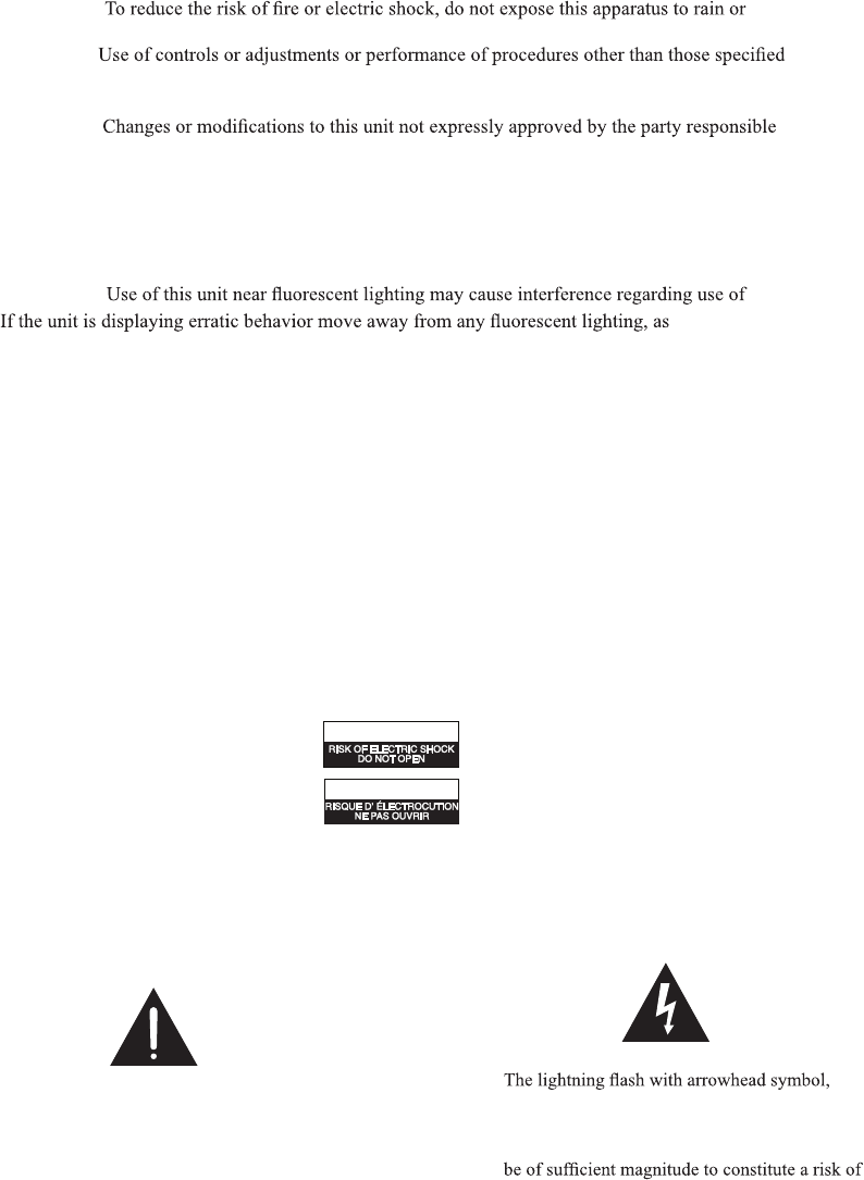 •  WARNING : Shock hazard - Do Not Open.