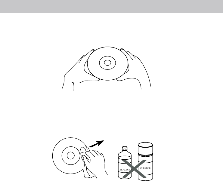 ● Clean the disc periodically with a soft, lint-free,dry cloth, Never use detergents or abrasive cleaners