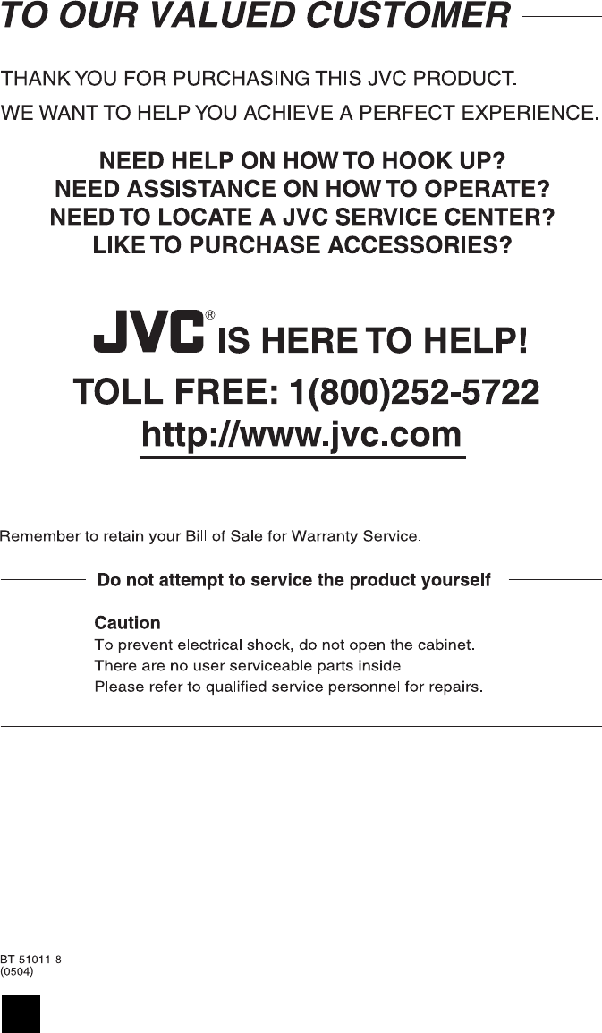 Changes or modifications not approved by JVC could void the warranty.