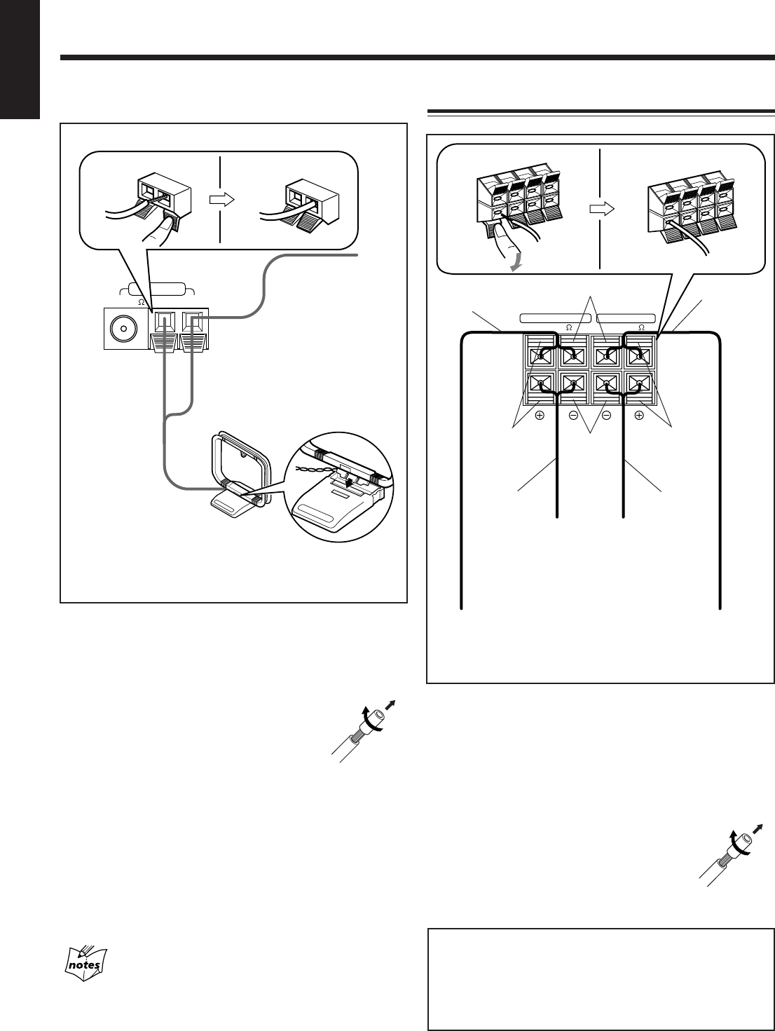 ligações dos altifalantes ao amplificador.