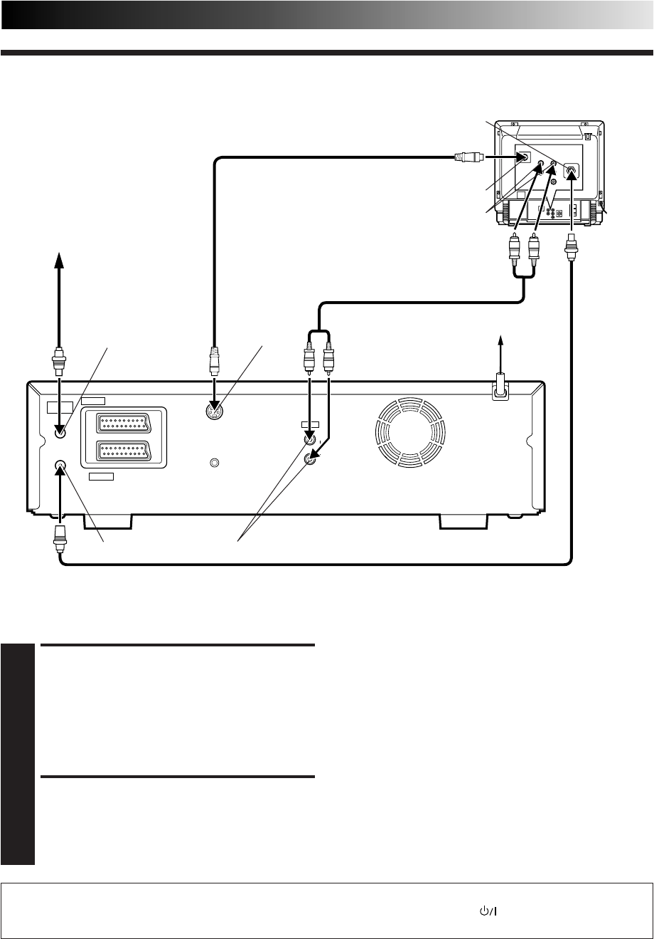 ●Als de videorecorder door middel van een 21-pens SCART kabel (Z blz. 4) is verbonden met een TV die