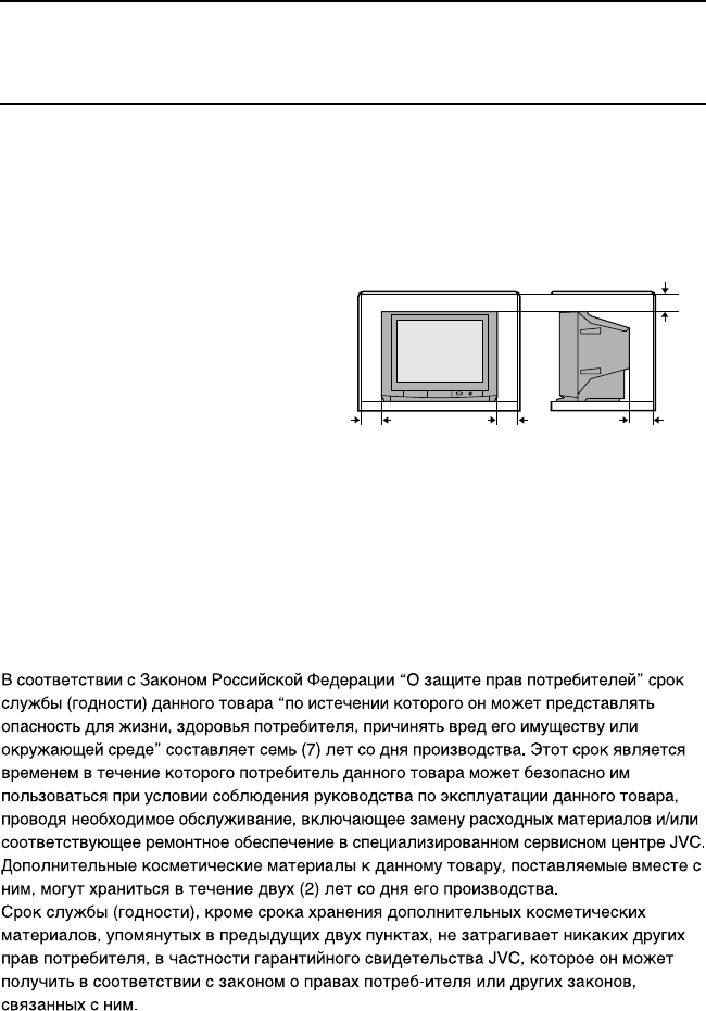 When installing this TV, leave spaces for ventilation around the TV of more